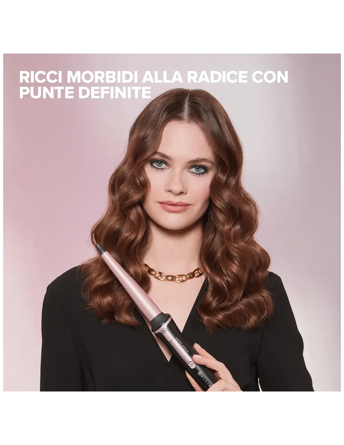 | Informazioni aggiuntive | Realizza diversi tipi di look riccio: da quelli ampi a quelli più stretti, utilizzando la base o la punta del ferro dalla forma conica Diametro ferro da 25 a 13 mm Capelli protetti e luminosi: con il rivestimento in Gloss Ceramic Calore costante con la tecnologia Thermo Control: per un risultato ottimale rispettando i capelli Adatto a tutti i capelli: temperatura regolabile da 150°C a 230°C, per ottenere lo styling desiderato Subito pronto e comodo da usare: riscaldamento rapido, puntale antiscottatura e cavo girevole per agevolare i movimenti durante l’uso Incluso il pratico guantino per facilitare l’avvolgimento della ciocca |