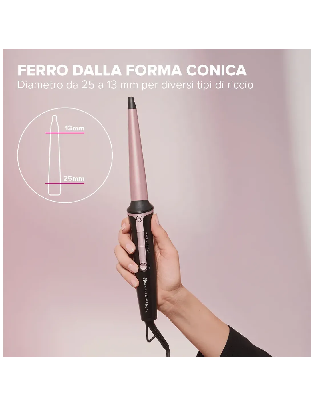 Bellissima Imetec Iconic Curls, ferro arricciacapelli, rivestimento in ceramica, forma conica per ricci stretti e morbidi,