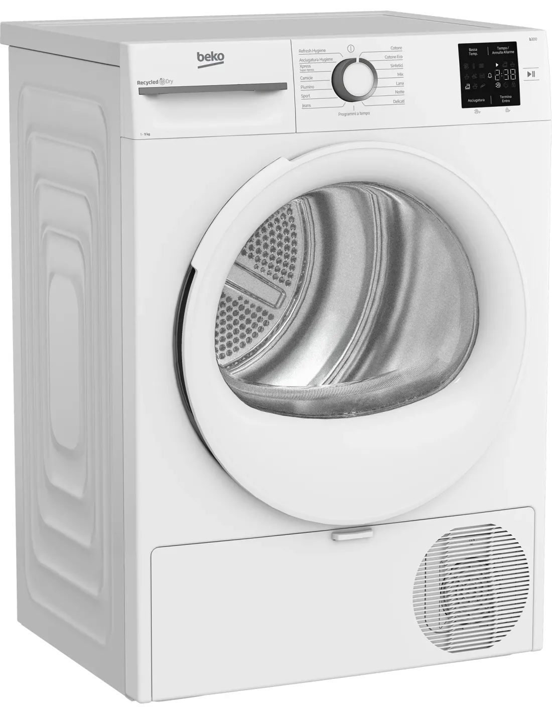 Beko BMT491WI_IT, Asciugatrice 9kg, Classe C, Linea Estetica NX, motore inverter, Display digitale, colore Bianco, oblò Bianco