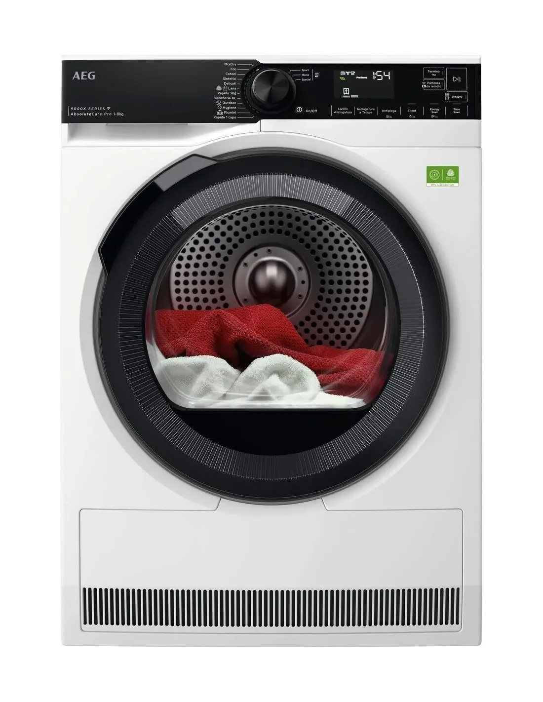 AEG 9000X Series ASCIUGATRICE 8 KG CLASSE A TR9HH8AY MADE IN EUROPE, Libera installazione, Caricamento frontale, Pompa di calore, Bianco, Manopola, Destra