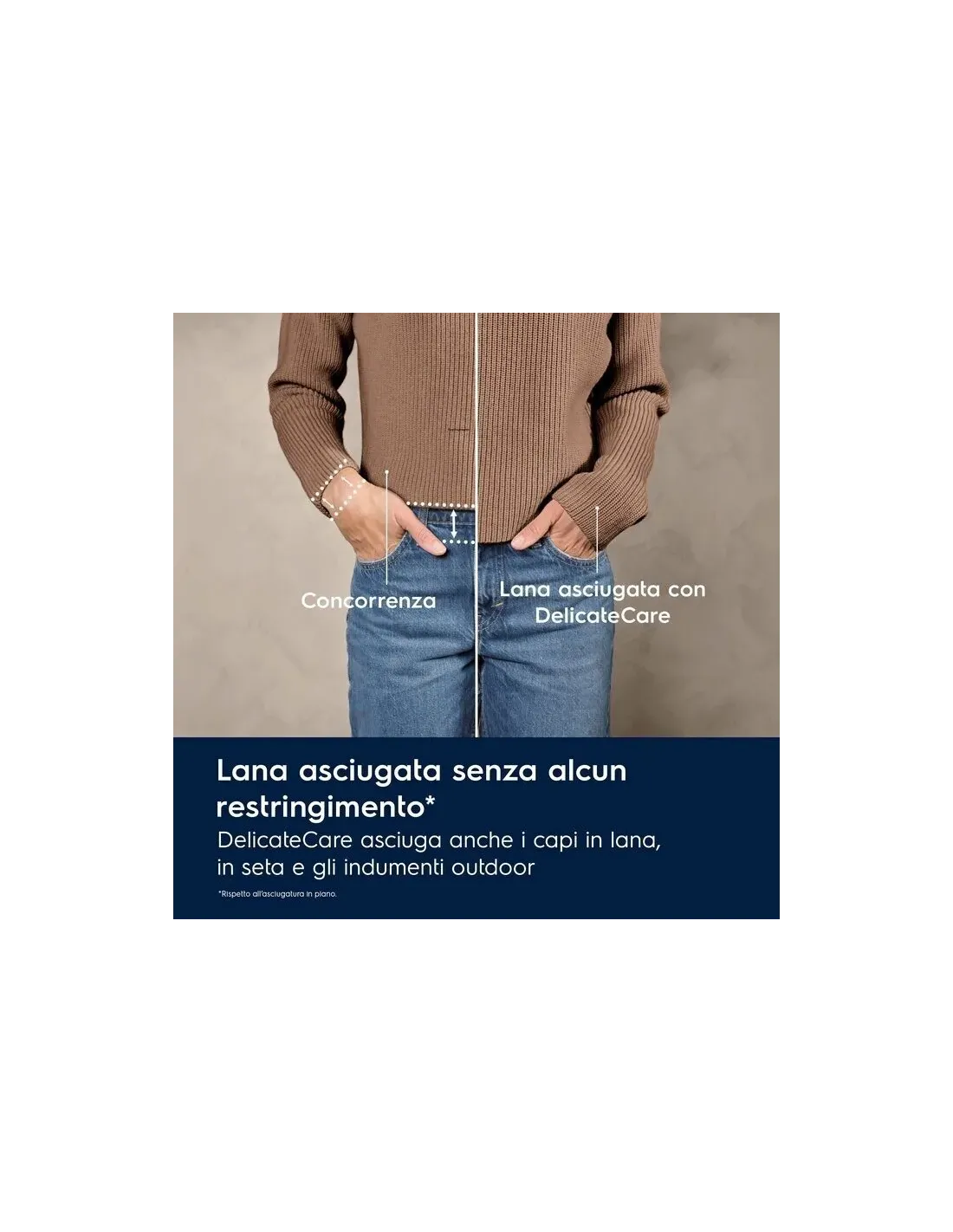 L’asciugatrice 700 DelicateCare regola la temperatura e il movimento del cesto in base al tipo di tessuto garantendo una cura su misura. La seta mantiene la forma, la lana viene asciugata in modo sicuro senza restringimento e l'idrorepellenza degli indumenti da esterno viene ripristinata. Certificato Woolmark.