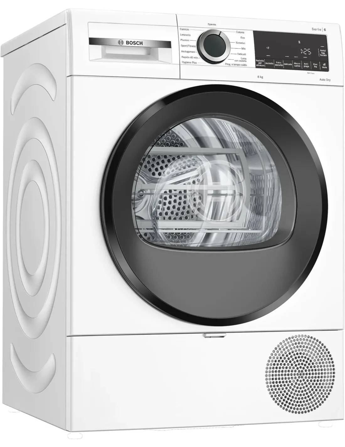 Bosch Serie 6 WQG233D1II, Libera installazione, Caricamento frontale, Pompa di calore, Bianco, Manopola, Touch, Destra