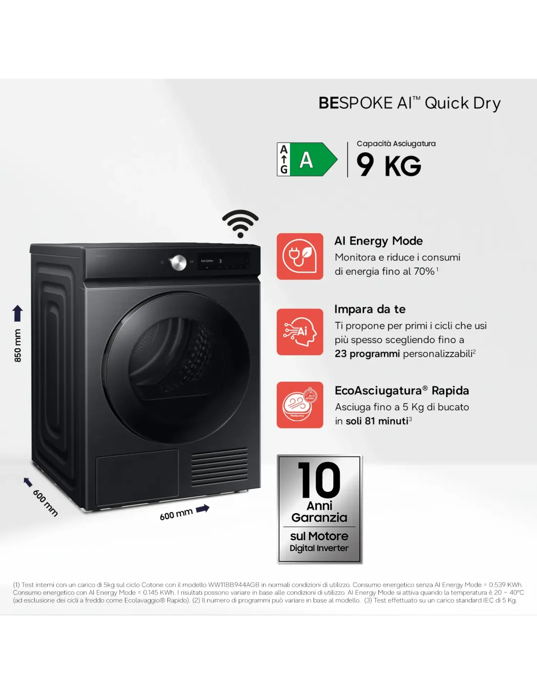 | Capacità cestello | 9 kg |