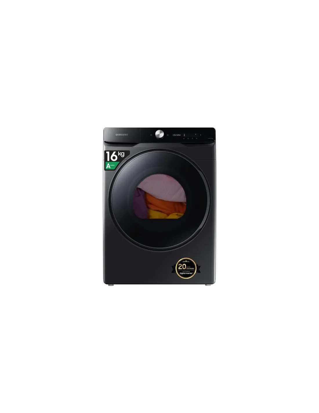 Samsung DV16DG8600BVU3 asciugatrice Libera installazione Caricamento frontale 16 kg A+++ NeroAsciutto perfetto in tempi recordHybrid Heat pumpAsciuga il bucato in meno tempo indipendentemente dalla temperatura esterna e risparmiando energia[1]. Il sistema Hybrid Heatpump è provvisto di un'apposita resistenza che pre-riscalda laria alla temperatura di asciugatura ottimale. Per mantenere costante questa temperatura, la pompa di calore integrata scalda laria attraverso un refrigerante e la ricicla, garantendo la massima efficienza.Risparmio energetico intelligenteModalità AI EnergyMonitora e riduci il consumo di energia della tua asciugatrice[2]. Grazie alla modalità AI Energy[3] , potrai monitorare i consumi energetici e prevedere limporto in bolletta. Per i programmi utilizzati in modalità AI Energy, riduce il consumo di energia fino al 20%[3] abbassando la temperatura e aumentando la durata del programma per asciugare a fondo.Sempre connessi grazie a SmartThingsWi-Fi integratoIl modo più semplice ed efficace per usare la tua asciugatrice. L'app SmartThings[4] utilizza i dati acquisiti durante le interazioni con gli utenti per migliorare le prestazioni di asciugatura. E con la funzione Delay End potrai ottimizzare la tua programmazione giornaliera. Inoltre, se la lavatrice e l'asciugatrice sono connesse, la funzione Auto Cycle Link[5] seleziona il programma di asciugatura ideale in base al lavaggio.SmartThings Clothing CareLavaggio su misura. Il modo più semplice per fare il bucato.Un bucato perfetto, proprio come lo vuoi tu. La funzione Clothing Care, offerta dallapp SmartThings[6] , analizza l'utilizzo[7] e vari fattori esterni, ad esempio il clima e la stagione, per dare consigli e creare cicli di asciugatura personalizzati in base al proprio stile di vita[8].SmartThings EnergyRisparmia energia in modo smart!Tieni sotto controllo i tuoi consumi energetici con SmartThings Energy[9]. Ti consiglia come migliorare l'efficienza energetica dei tuoi elettrodomestici fornendoti in tempo reale le informazioni sui loro consumi[10] e confrontando questi dati con quelli del mese precedente. e se stai per superare la soglia di consumo mensile che hai impostato, il sistema ti invia una notifica.SmartThings Home CareManutenzione semplice e intelligentePrendersi cura dell'asciugatrice non è mai stato così semplice. SmartThings Home Care[11] ti avvisa automaticamente quando è necessario sostituire un componente e ti aiuta a risolvere eventuali problemi. Oltre a un manuale utente, questa pratica funzione offre anche consigli utili per utilizzare al meglio il tuo elettrodomestico.Asciuga tanti capi in piùVersione extralargeAsciuga tanti capi in una sola volta, risparmiando tempo e fatica. Grazie alla sua incredibile capienza, questa asciugatrice è in grado di contenere in un unico carico tanti capi anche molto grandi, ad esempio un piumone invernale. In questo modo, dovrai asciugare meno carichi[12] e avrai più tempo da dedicare al tuo benessere.Asciuga i vestiti in modo uniforme360 fori per lariaOgni capo sarà sempre perfettamente asciutto, in ogni punto del cestello. Il sistema di ventilazione è dotato di 360 fori disposti circolarmente che migliorano la circolazione dell'aria e distribuiscono un grande volume d'aria in modo uniforme e in ogni direzione. In questo modo, il bucato verrà asciugato con la massima efficacia su tutta la superficie del cestello.Fino al 99,9% di sanificazione[13] Hygiene Care +Niente più batteri, acari e allergeni sul tuo bucato. Hygiene Care+ igienizza i capi asciutti e bagnati[13] grazie a getti di calore ad alta temperatura. Elimina fino al 95% dei pollini, il 100% degli acari della polvere e il 99,9% dei batteri[14] , oltre al 99% degli allergeni[15] rilasciati dalla polvere e dai peli degli animali.Meno pelucchiSistema filtrante a tre stratiGrazie a questo sistema filtrante a tre strati, avrai meno residui di polvere sui vestiti e la tua asciugatrice sarà sempre in perfette condizioni. Durante l'asciugatura, questo sistema cattura la polvere e le fibre che si staccano dai capi in modo molto efficace, agendo per due volte con un filtro 2 in 1 sotto il cestello e una terza volta con un filtro ultrasottile[16] davanti allo scambiatore di calore.Pulizia perfetta anche con gli amici a quattro zampePet CareUn profumo di pulito irresistibile anche con gli amici a quattro zampe. Il programma Pet Care elimina fino al 96,3% dei peli più sottili[17] che si attaccano ai vestiti e ad altri capi, come la biancheria da letto, e che spesso non si notano nemmeno. Inoltre, è in grado di rimuovere fino al 99% dei cinque odori sgradevoli[18] sprigionati dal cibo e dalle feci degli animali domestici.Asciutto perfetto in tempi recordHybrid Heat pump