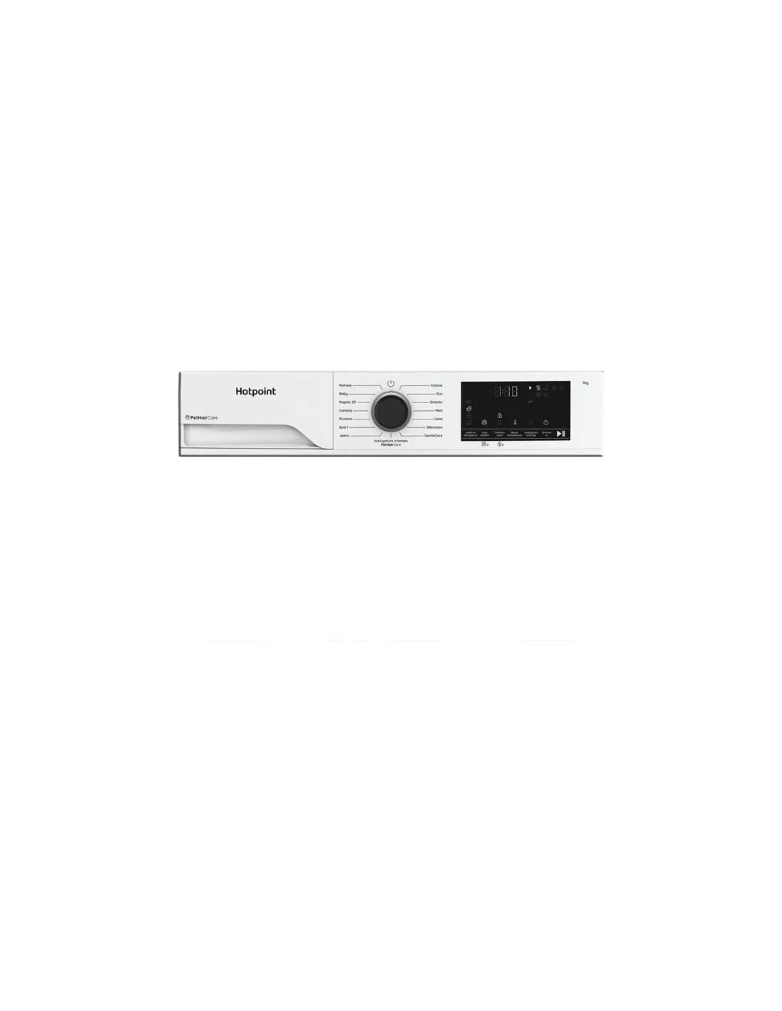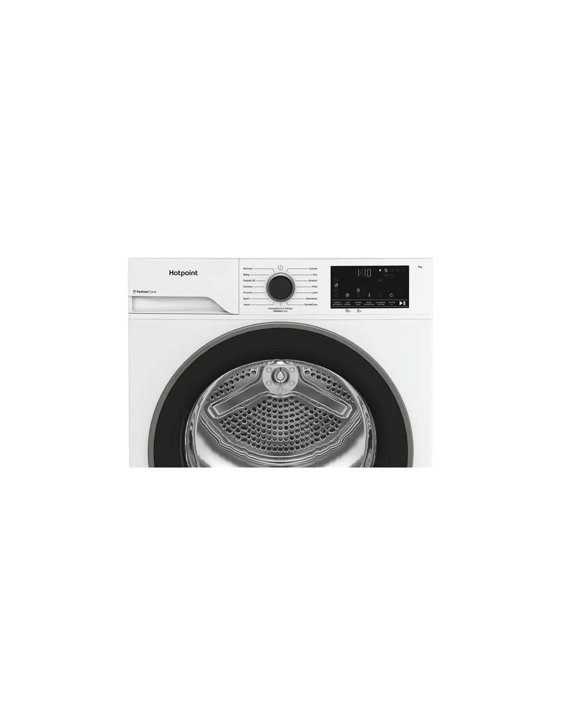 Hotpoint Ariston HPTS 74D BS IT, Capacità 7kg, classe C, EasyIron, Slim, PetHair Removal - Profondità mobile 46 cmCaratteristiche di questa asciugatrice a libera installazione Hotpoint Ariston: cestello spazioso da 7,0 kg.PethaircarePetHairCare è una funzione innovativa a vapore, progettata specificamente per eliminare i peli degli animali domestici. Garantisce un bucato fresco e pulito, libero dai peli più ostinati, pur rimanendo delicata sui tuoi capi.GentlecareIl programma GentleCare è progettato per proteggere i tuoi capi delicati - dalle camicie alla lingerie - con un’asciugatura delicata a basse temperature.Asciugatrice slimL'asciugatrice slim di Whirlpool offre un design salvaspazio che ti consente di godere di prestazioni di asciugatura elevate anche in ambienti più piccoli. Nonostante la profondità ridotta, offre la stessa capacità dei modelli standard.