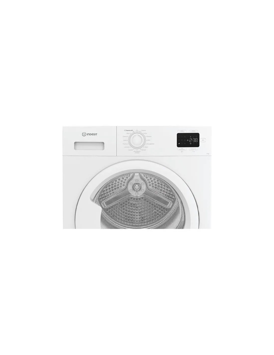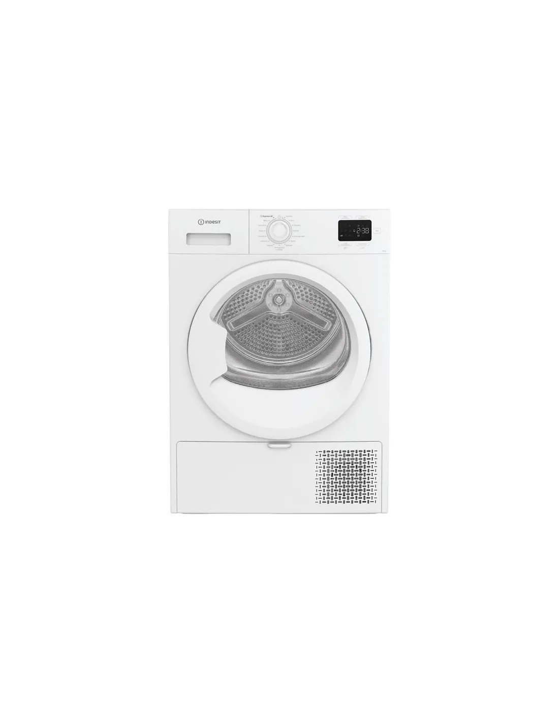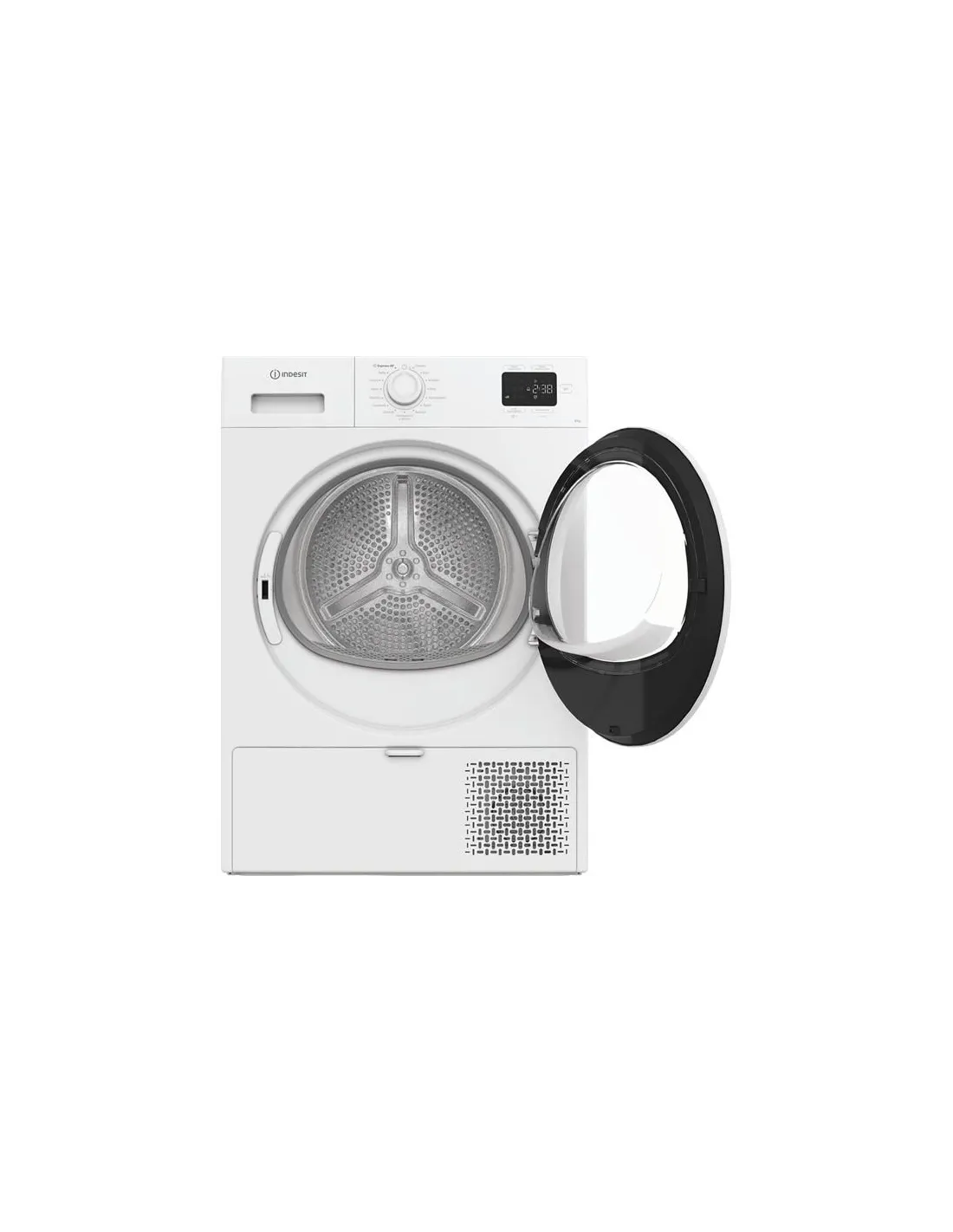 Indesit C YD 93D WW IT, Capacità 9kg, classe D, colore White, Dispay digitale, QuickDry, Libera installazione, Caricamento frontale, Pompa di calore, Bianco, Pulsanti, Manopola, Destra