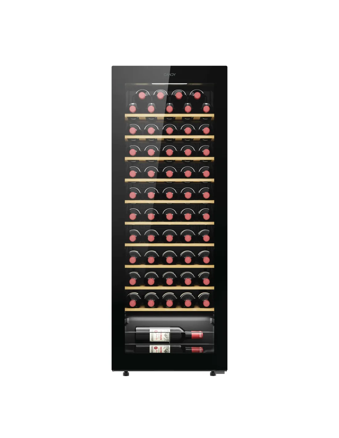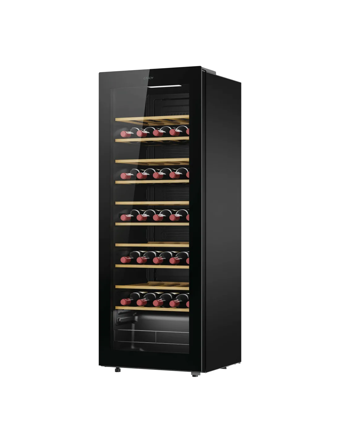 Candy DiVino CWC058. Posizionamento dell'apparecchio: Libera installazione, Colore struttura: Nero, Colore interno: Nero. Capacità bottiglie: 58 bottiglia/bottiglie, Intervallo temperatura (zona 1): 5 - 20 °C, Classe climatica: N-ST. Tipo di controllo: Touch, Tipo di lampada: LED, Applicazioni per il controllo supportate: hOn. Classe efficienza energetica: G, Consumo energetico annuo: 147 kWh, Scala di efficienza energetica: Da A a G. Larghezza: 475 mm, Profondità: 456 mm, Altezza: 1280 mm