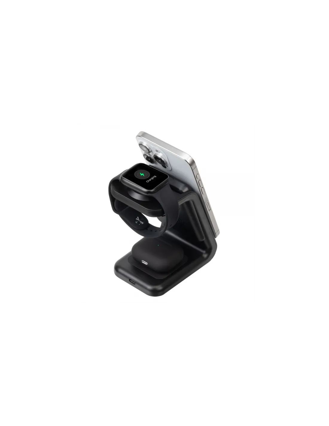 Alimenta il tuo ecosistema Apple con questo caricabatterie wireless 3 in 1 per iPhone. Si adatta perfettamente a più dispositivi Apple, tra cui iPhone 15, 14, 13 e 12, Pro e Pro Max, Apple Watch e AirPods.