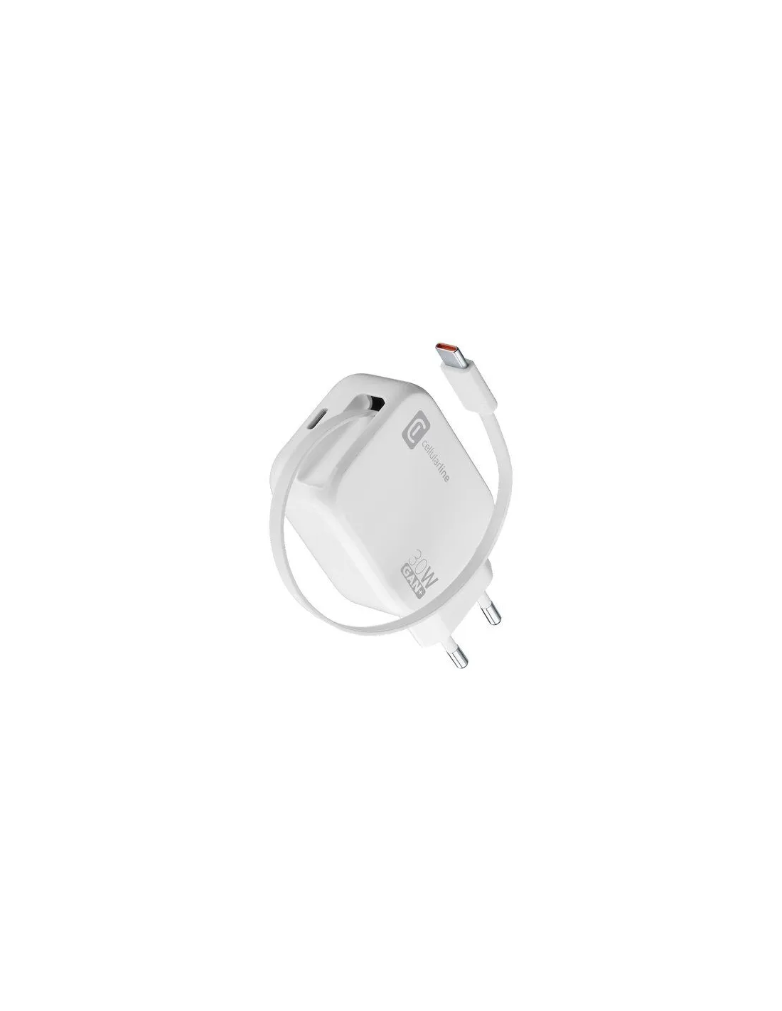 Cellularline Retractable Power 30W Caricabatterie da rete 30W con cavo retrattile USB-C e porta USB-C. Tipo di caricatore: Interno, Tipologia alimentazione: AC, Compatibilità caricatore: Auricolare, Universale, Quantità di porte USB Tipo C: 1, Ricarica rapida, Funzionalità di protezione dell'alimentazione: Sovraccarico, Cortocircuito. Lunghezza cavo: 0,7 m, Colore del prodotto: Bianco