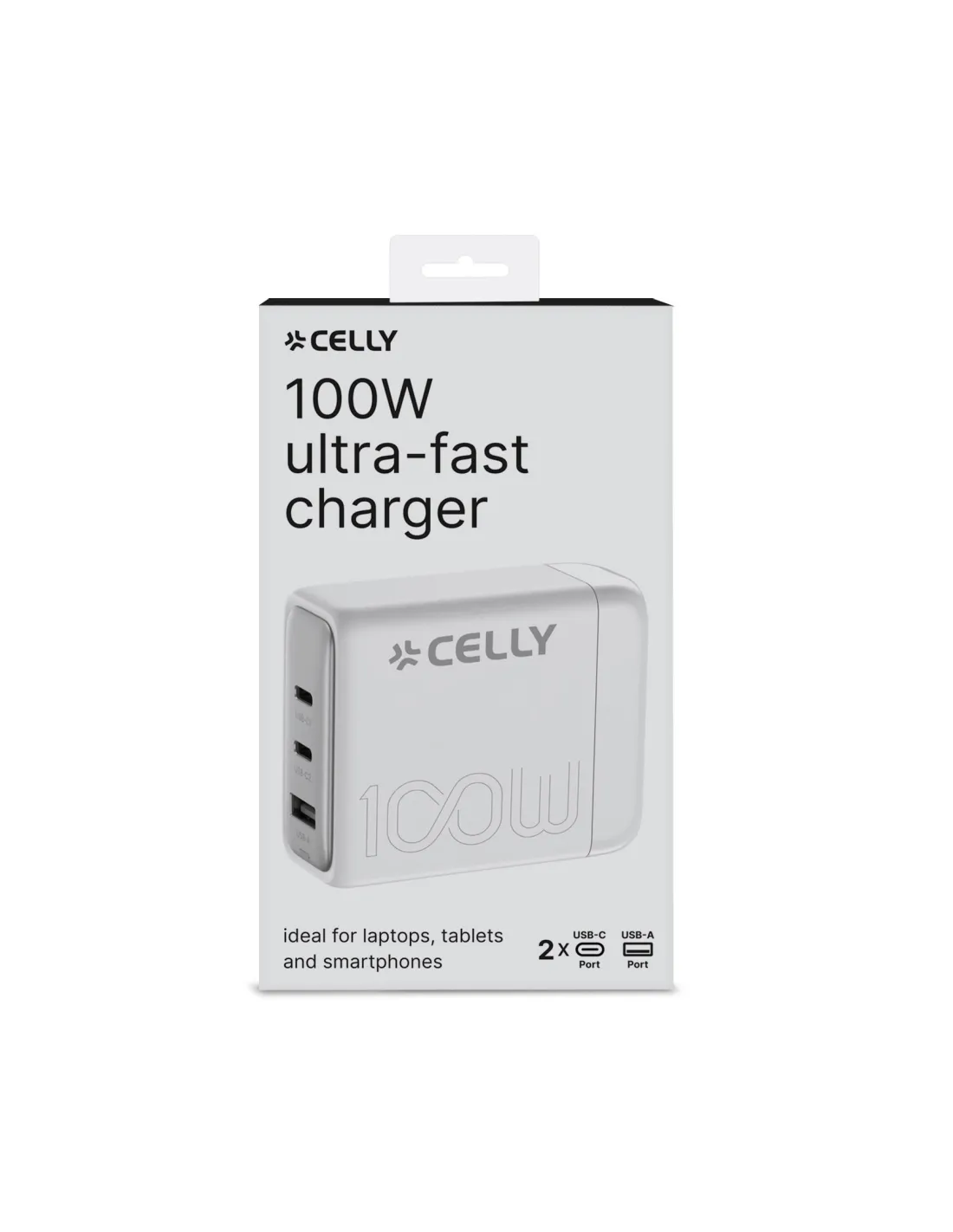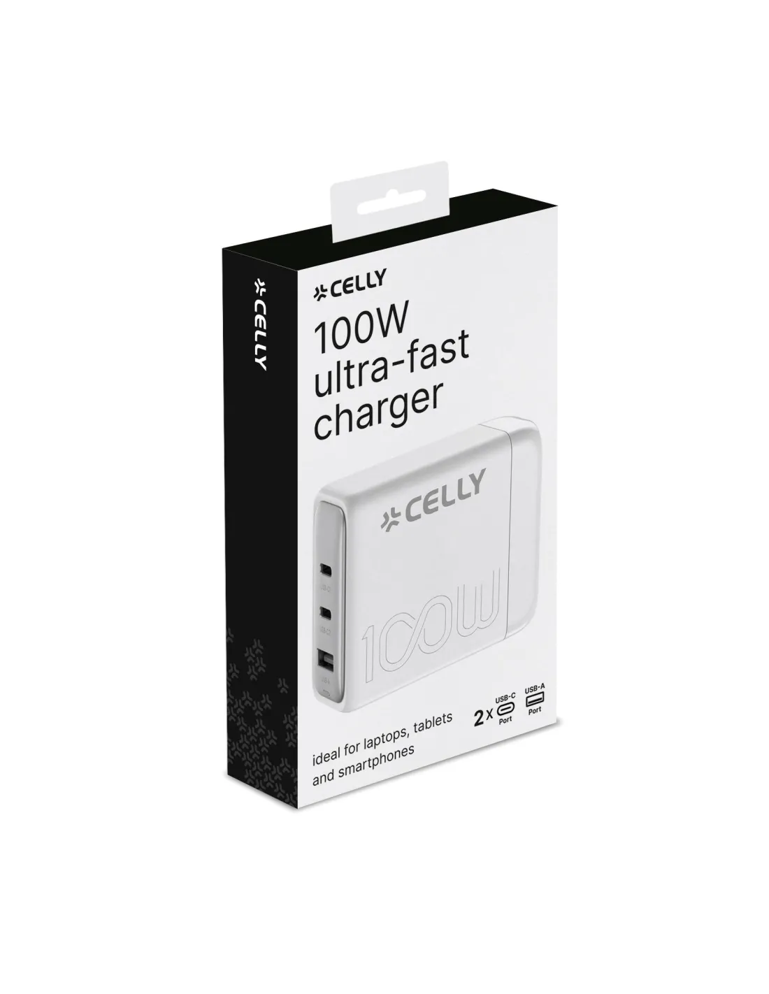 Powerstation potente e versatile dotata di tecnologia GaN e di due porte USB-C e una USB-A, che fornisce fino a 100 Watt di potenza di ricarica.