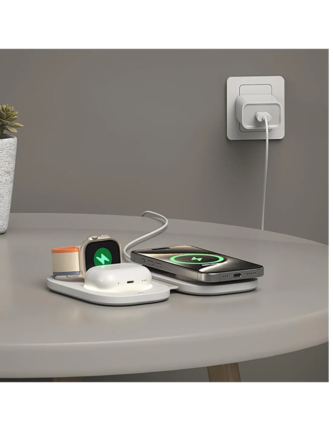 Ricarica wireless 3 in 1: Supporta la ricarica simultanea di smartphone, auricolari wireless e smartwatch.