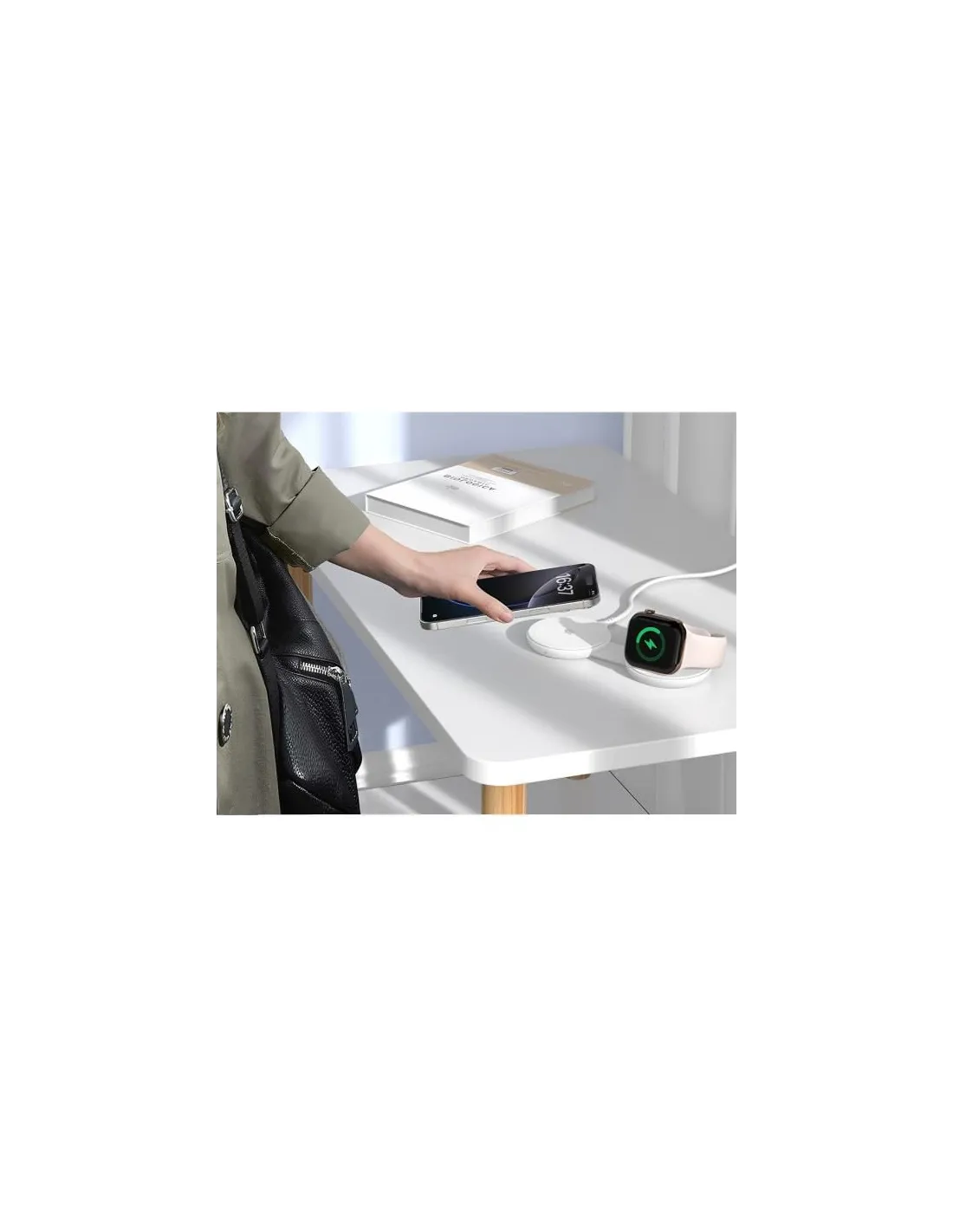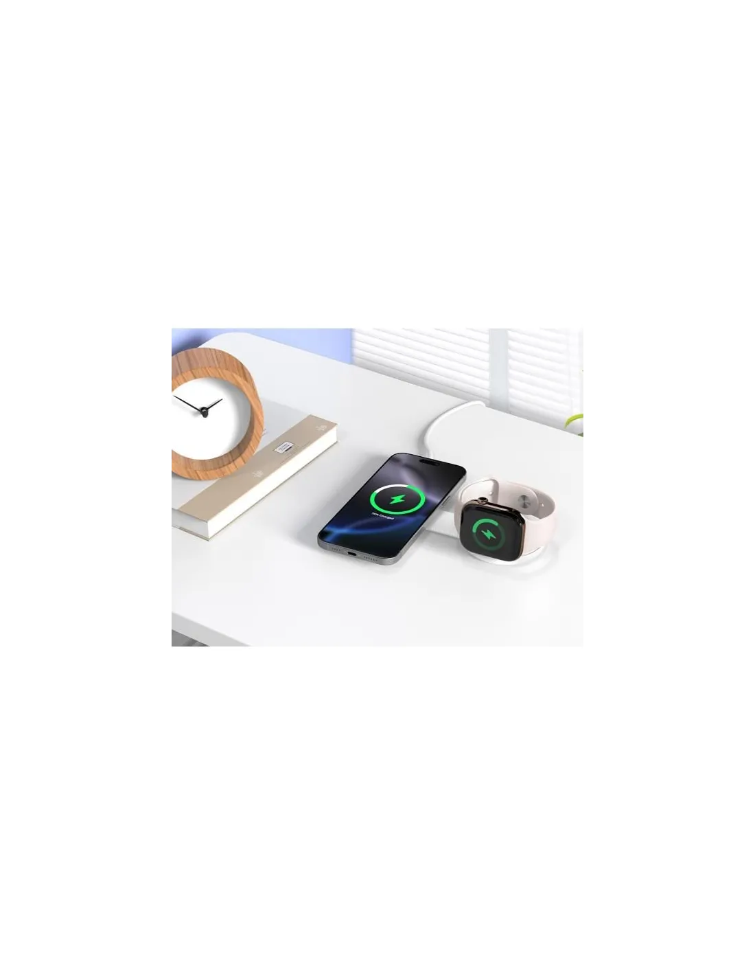 Prova la ricarica senza sforzo con il caricabatterie wireless magnetico pieghevole 2 in 1. Questa soluzione intelligente e compatta alimenta contemporaneamente il tuo iPhone e Apple Watch, aiutandoti a ridurre l'ingombro dei cavi e a mantenere il tuo spazio organizzato.