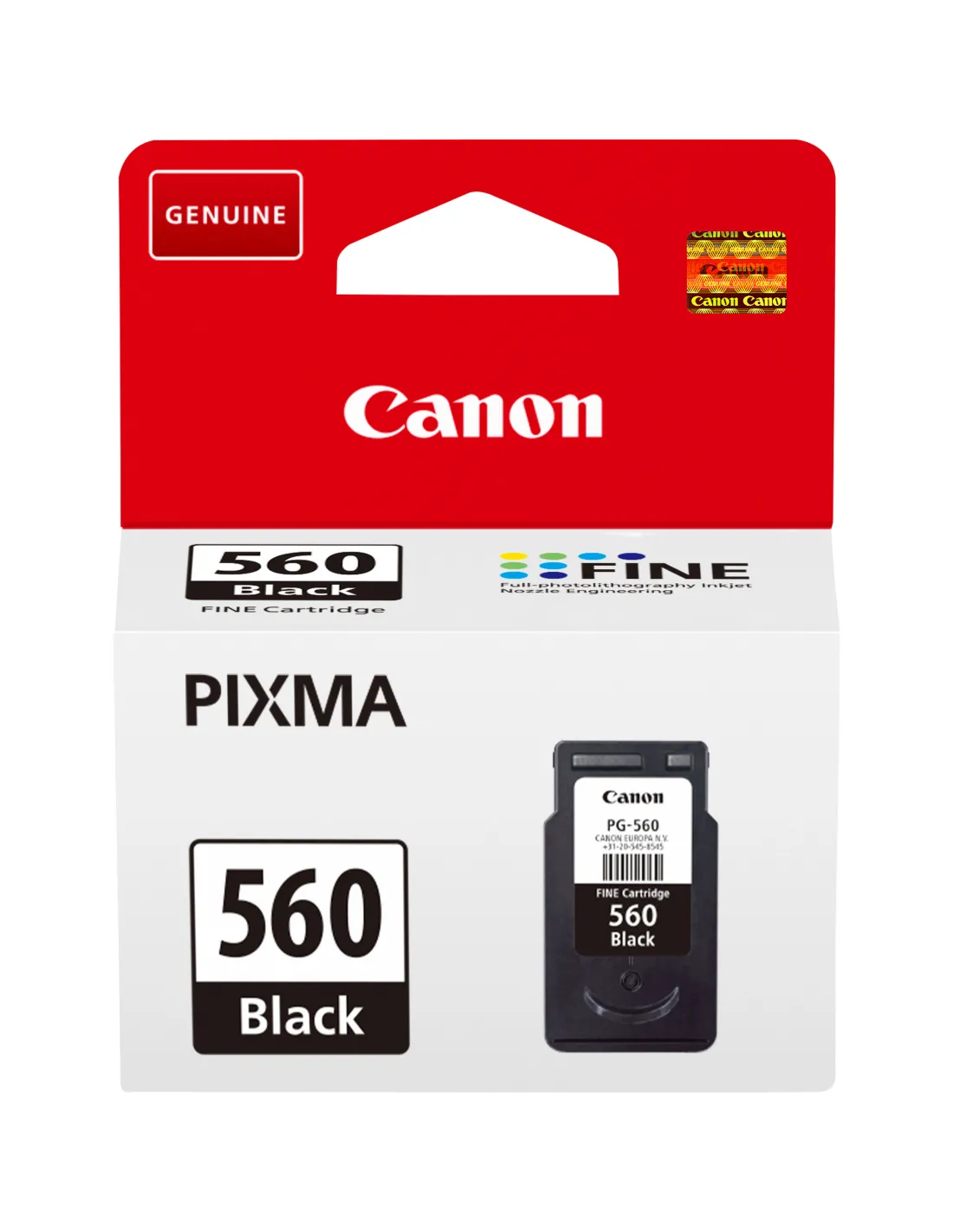 Canon PG-560 Cartuccia d'inchiostro nero originale 1pz. Tipo di inchiostro nero: Inchiostro a base di pigmento, Volume dell'inchiostro nero: 7,5 ml, Colori di stampa: Nero, Quantità per pacco: 1 pz, Resa in pagine dell'inchiostro a colori: 180 pagine