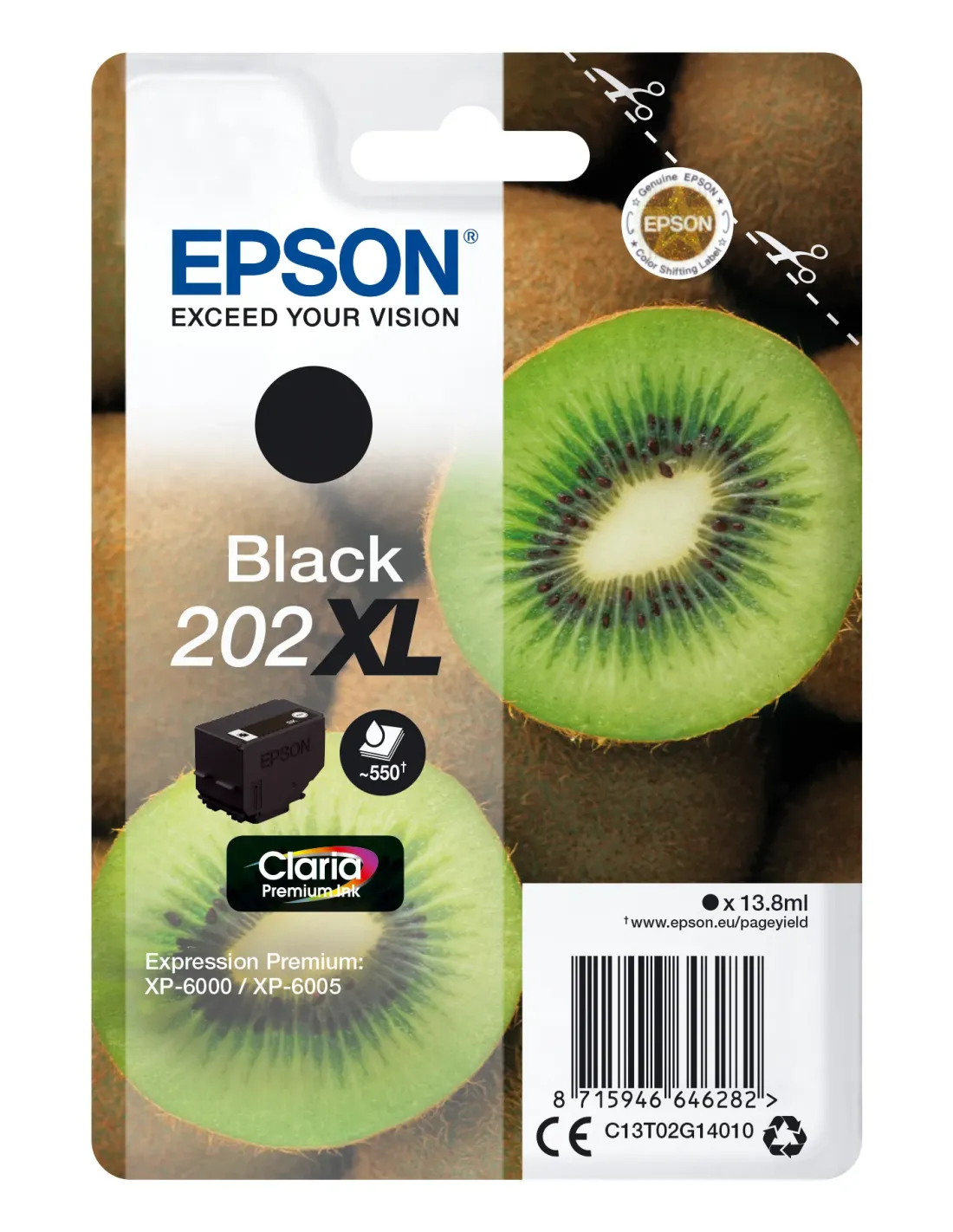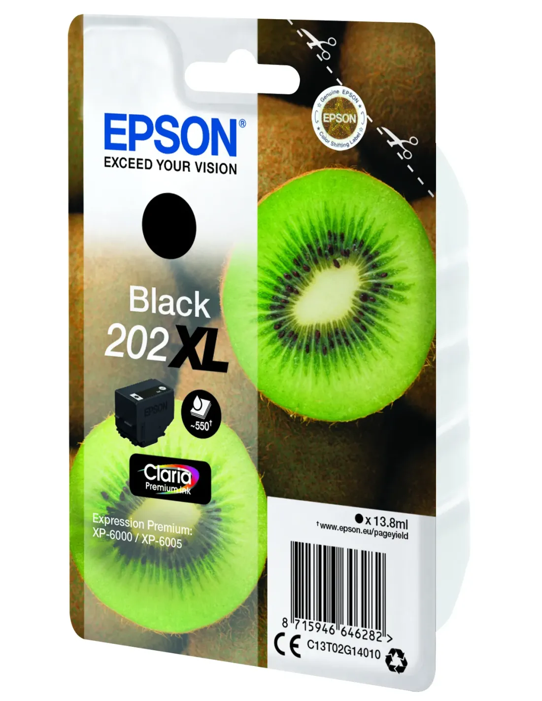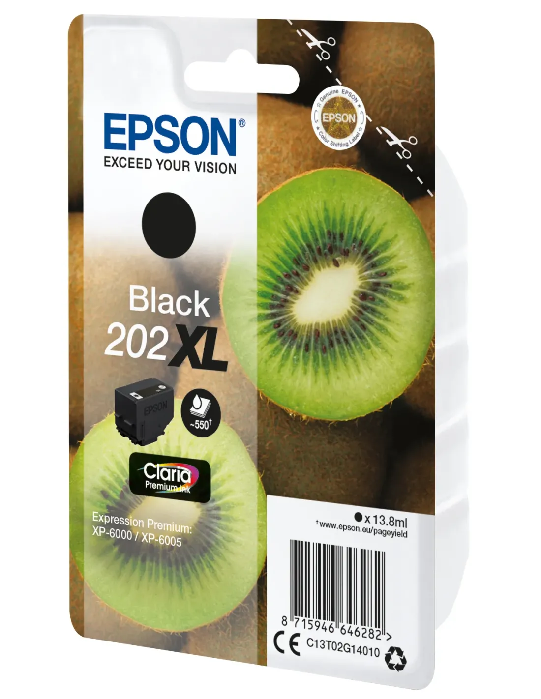 EpsonEpson Kiwi Singlepack Black 202XL Claria Premium Ink, Resa elevata (XL), Nero, Inchiostro a base di pigmento, 13,8 ml, 1 pz, 550 pagine