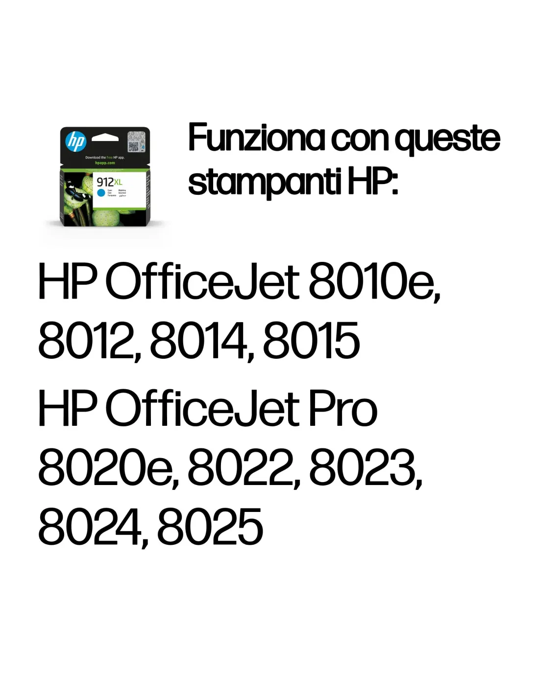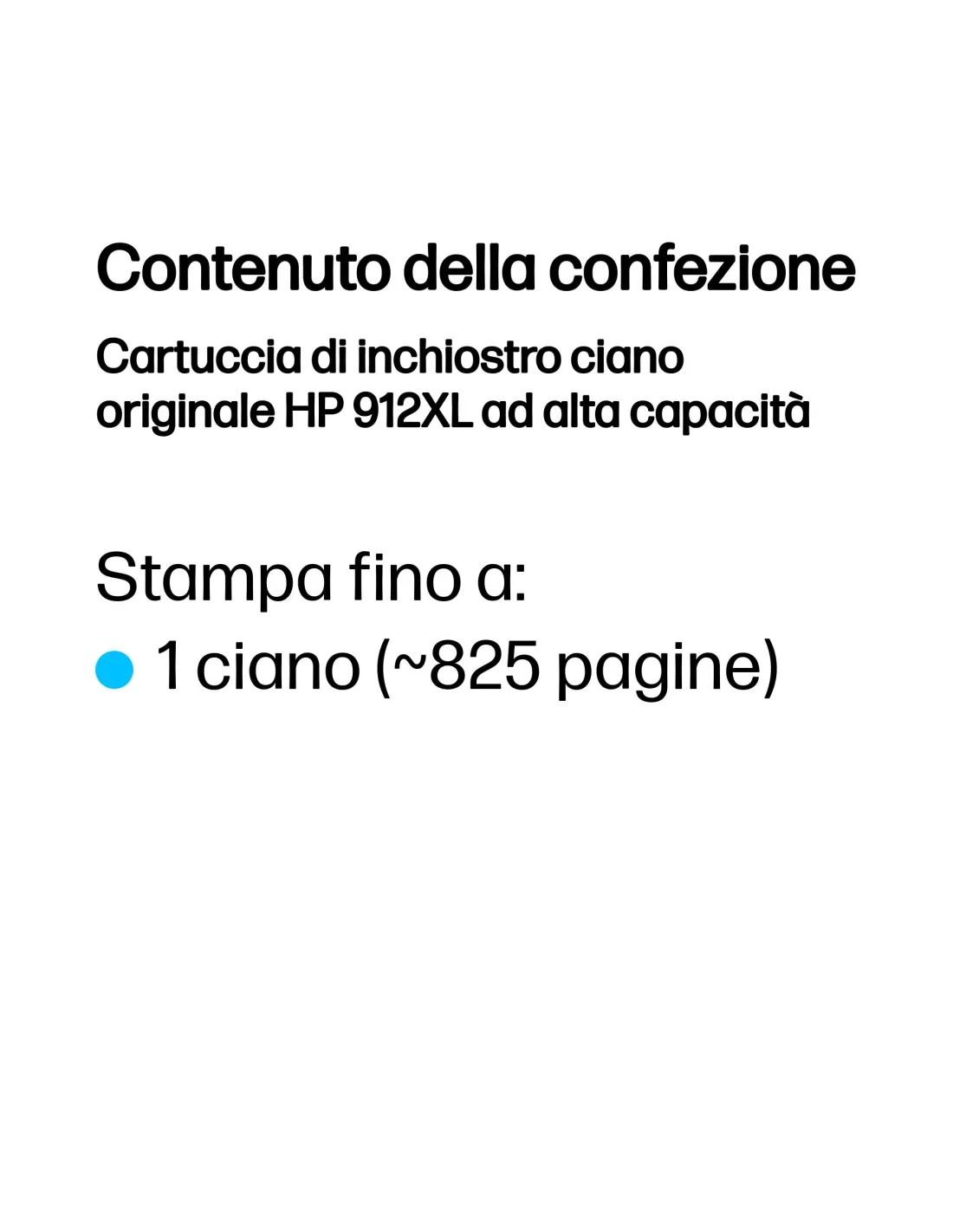 HP Cartuccia di inchiostro ciano originale 912XL ad alta capacità. Resa in pagine dell'inchiostro a colori: 700 pagine, Colori di stampa: Ciano, Quantità per pacco: 1 pz