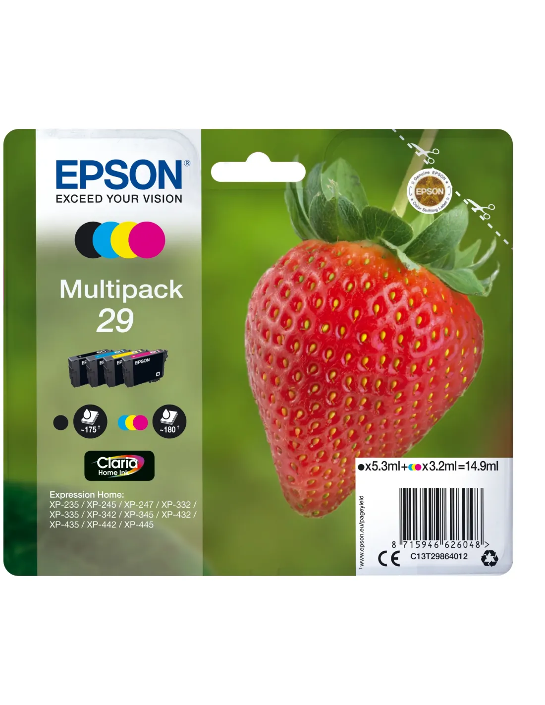 EpsonEpson Strawberry Multipack Fragole 4 colori Inchiostri Claria Home 29, Resa standard, Nero, Ciano, Magenta, Giallo, 5,3 ml, 3,2 ml, 1 pz, 175 pagine