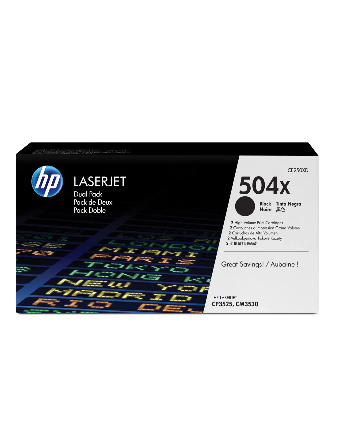 HP Confezione da 2 cartucce originali di Toner nero ad alta capacità LaserJet 504X. Resa in pagine del toner nero: 21000 pagine, Colori di stampa: Nero, Quantità per pacco: 2 pz