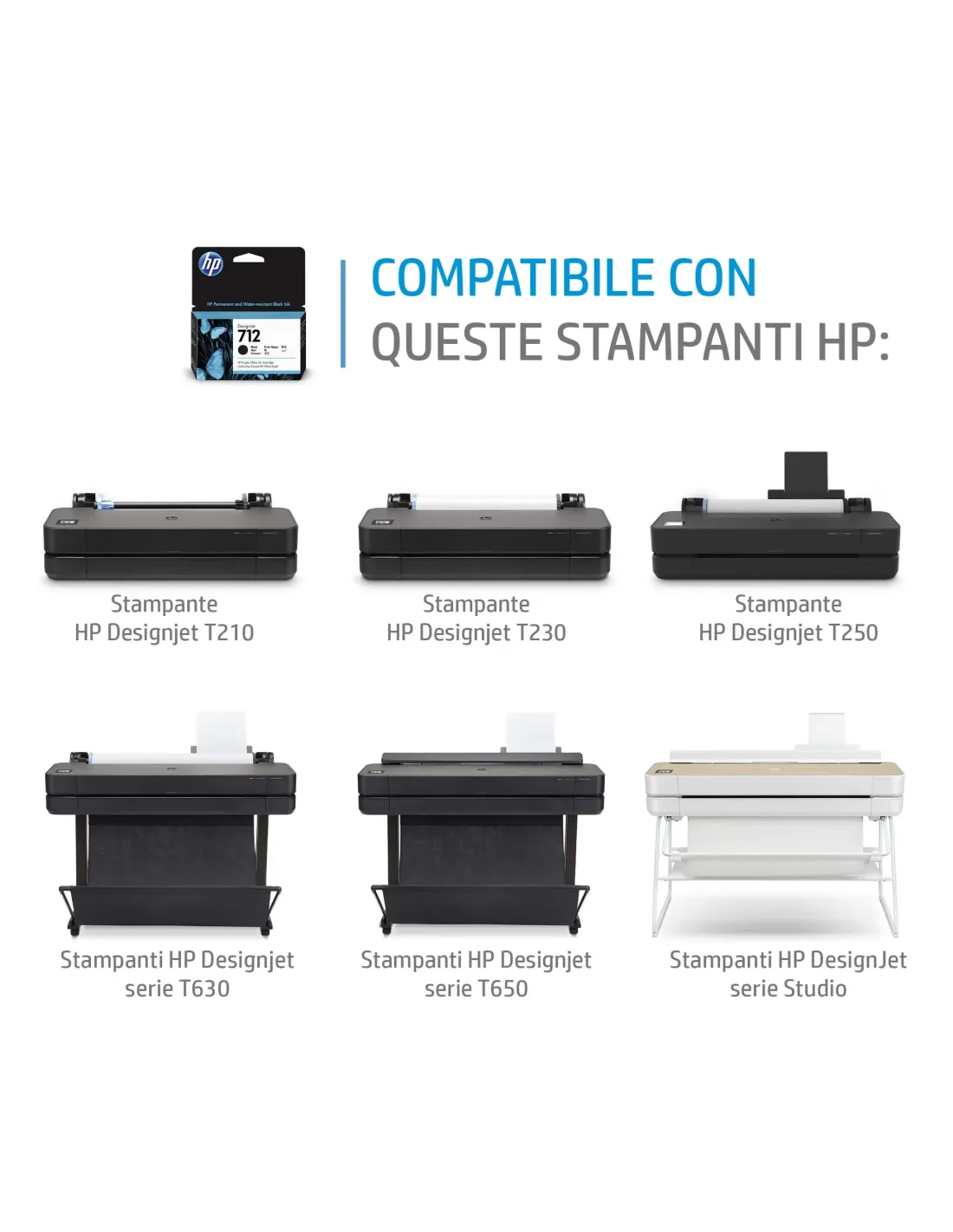HP Cartuccia di inchiostro nero originale DesignJet 712 da 38 ml. Compatibilità: Stampante HP DesignJet serie T210, T230, T250, T630, T650, Tecnologia di stampa: Getto termico d'inchiostro, Colori di stampa: Nero. Larghezza: 119 mm, Profondità: 36 mm, Altezza: 126 mm. Larghezza imballo: 119 mm, Profondità imballo: 36 mm, Altezza imballo: 126 mm. Numero di cartoni per pallet: 120 pz, Quantità per pallett: 4800 pz, Numero di livelli per pallet: 10 pz. Dimensioni pallet (L x P x A): 1219,2 x 1016 x 1956 mm, Dimensioni del pallet (w x d x h): 1219,2 x 1016 x 1956,1 mm (48 x 40 x 77"), Peso pallet: 519,5 kg (1145.4 lb)