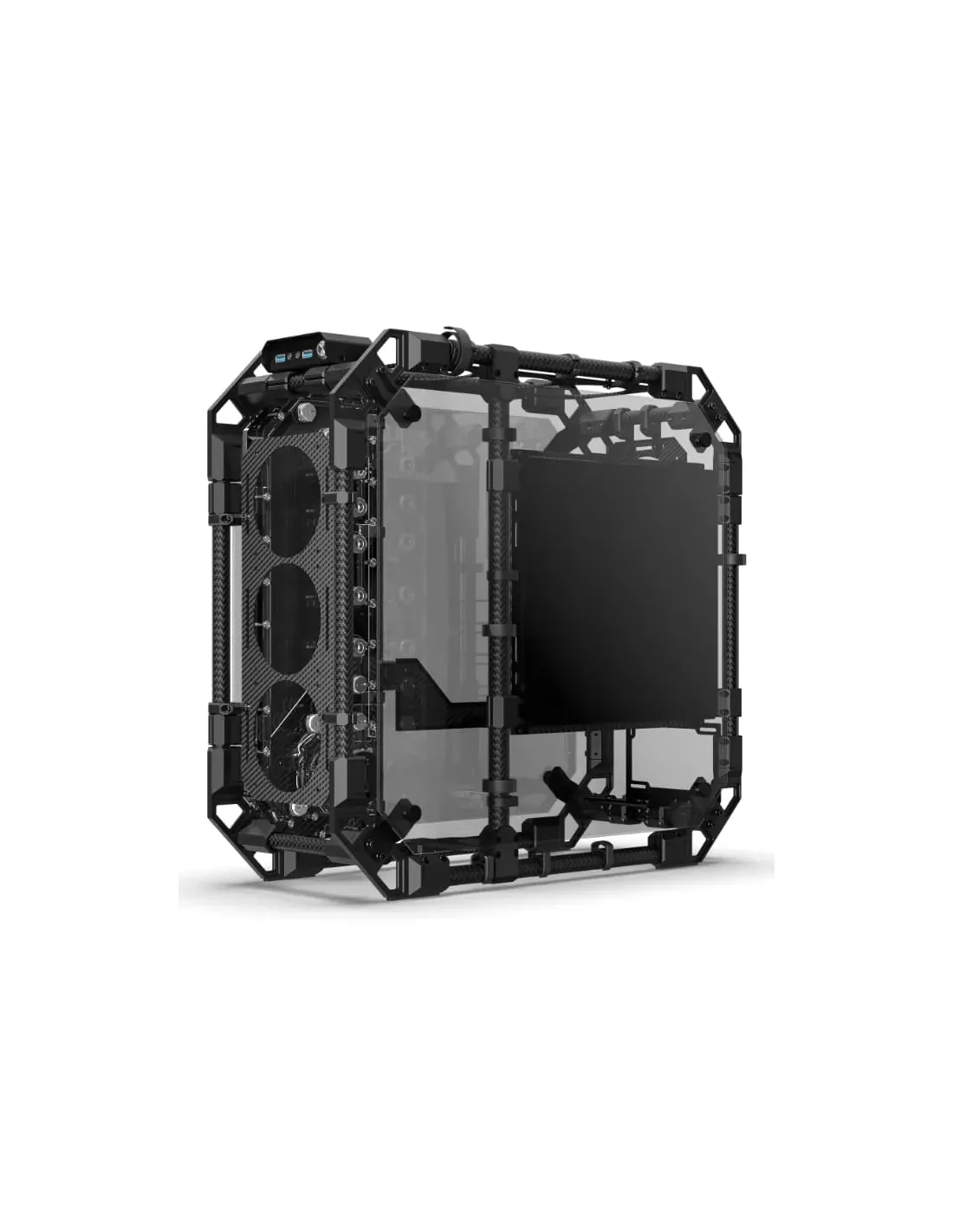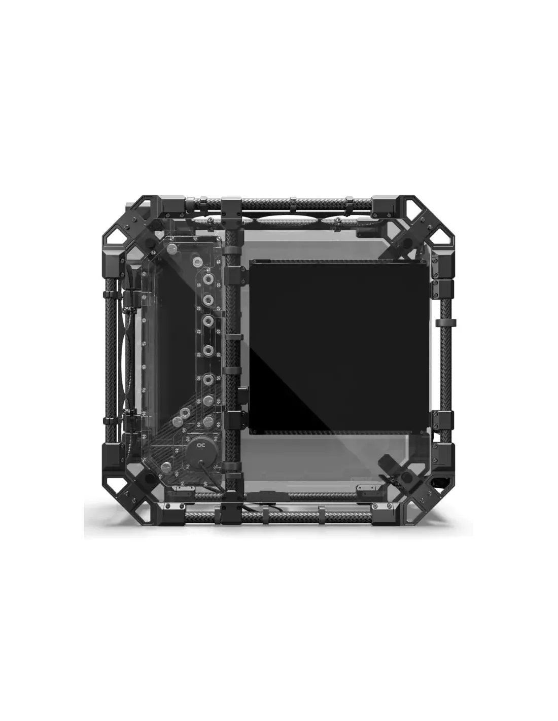 Alphacool Apex Pro Skeleton. Fattore di forma: Full Tower, Tipo: PC, Colore del prodotto: Nero, Carbonio. Posizione alimentazione: Fondo, Fattori di forma di alimentazione supportati: ATX. Diametro delle ventole frontali supportato: 120,240,360 mm, Diametro delle ventole posteriori supportato: 120 mm, Diametri delle ventole superiori supportati: 120,240,360 mm. Larghezza: 259,8 mm, Profondità: 607,5 mm, Altezza: 573 mm. Cavi inclusi: SATA