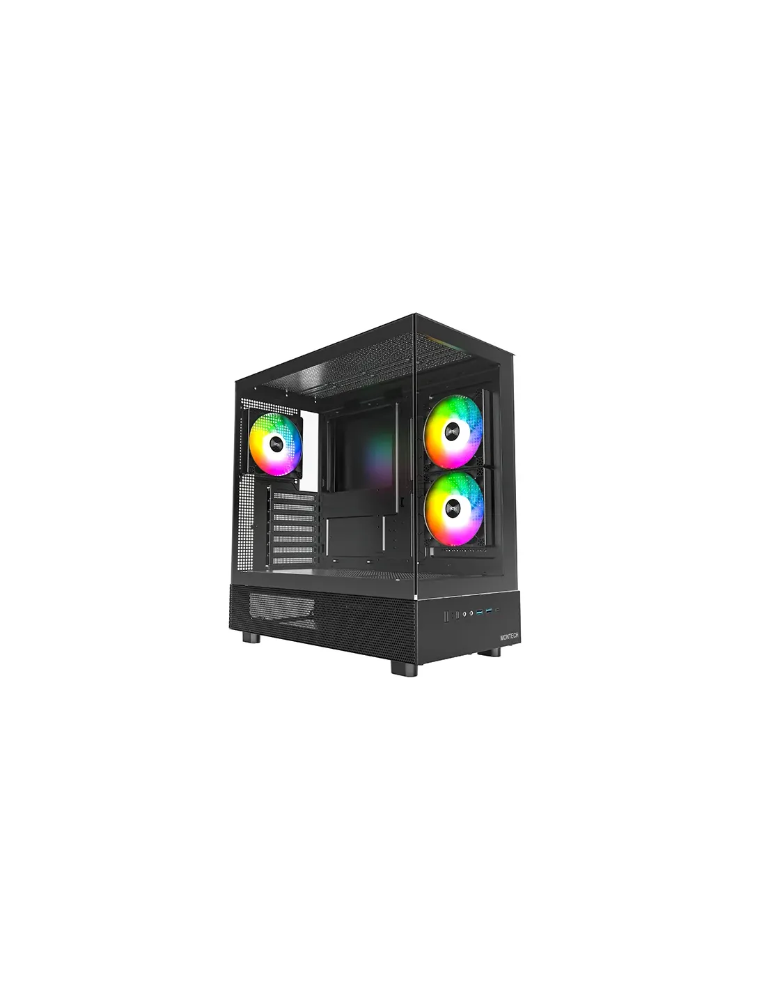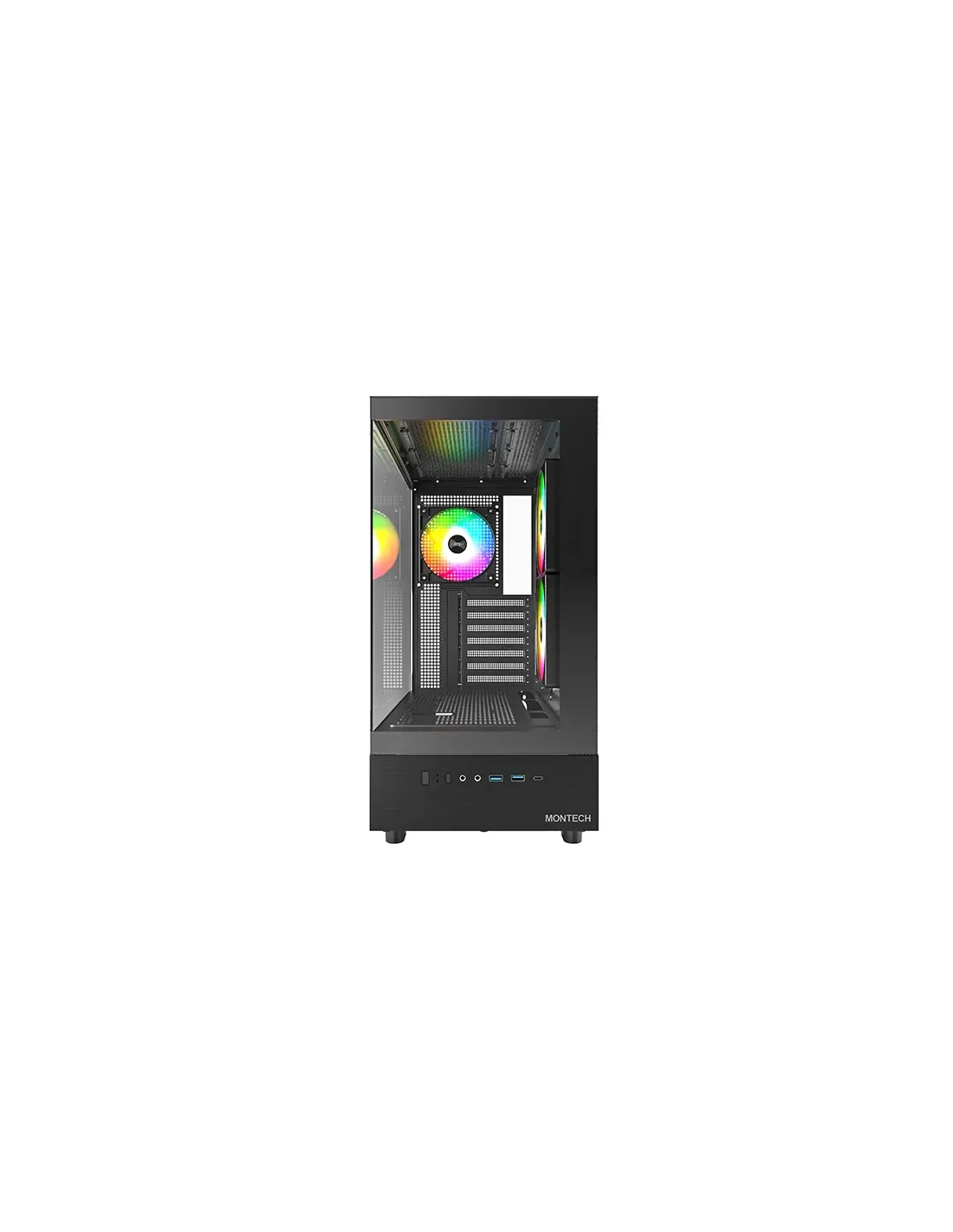 Montech XR. Fattore di forma: Tower, Tipo: PC, Colore del prodotto: Nero. Ventole laterali installate: 2x 120 mm, Diametro delle ventole laterali supportato: 120 mm, Rear fans installed: 1x 120 mm. Dimensioni di hard disk drive supportati: 3.5", Dimensione SSD: 2.5". Larghezza: 230 mm, Profondità: 435 mm, Altezza: 450 mm