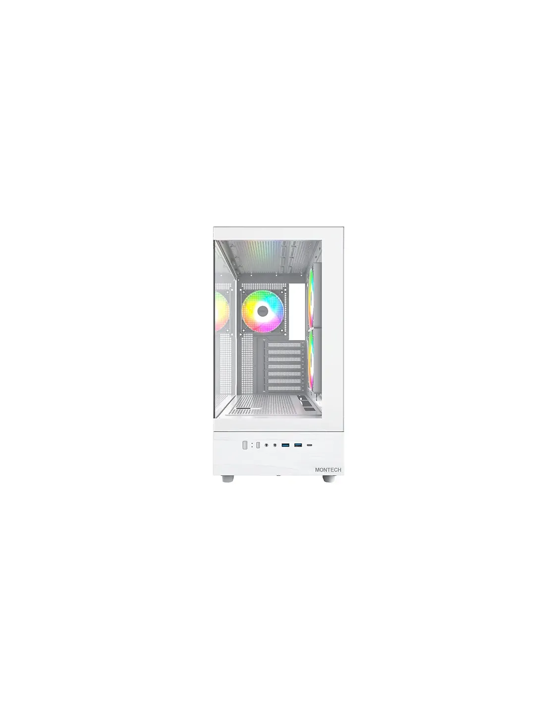 Montech XR. Fattore di forma: Tower, Tipo: PC, Colore del prodotto: Bianco. Ventole laterali installate: 2x 120 mm, Diametro delle ventole laterali supportato: 120 mm, Rear fans installed: 1x 120 mm. Dimensioni di hard disk drive supportati: 3.5", Dimensione SSD: 2.5". Larghezza: 230 mm, Profondità: 435 mm, Altezza: 450 mm