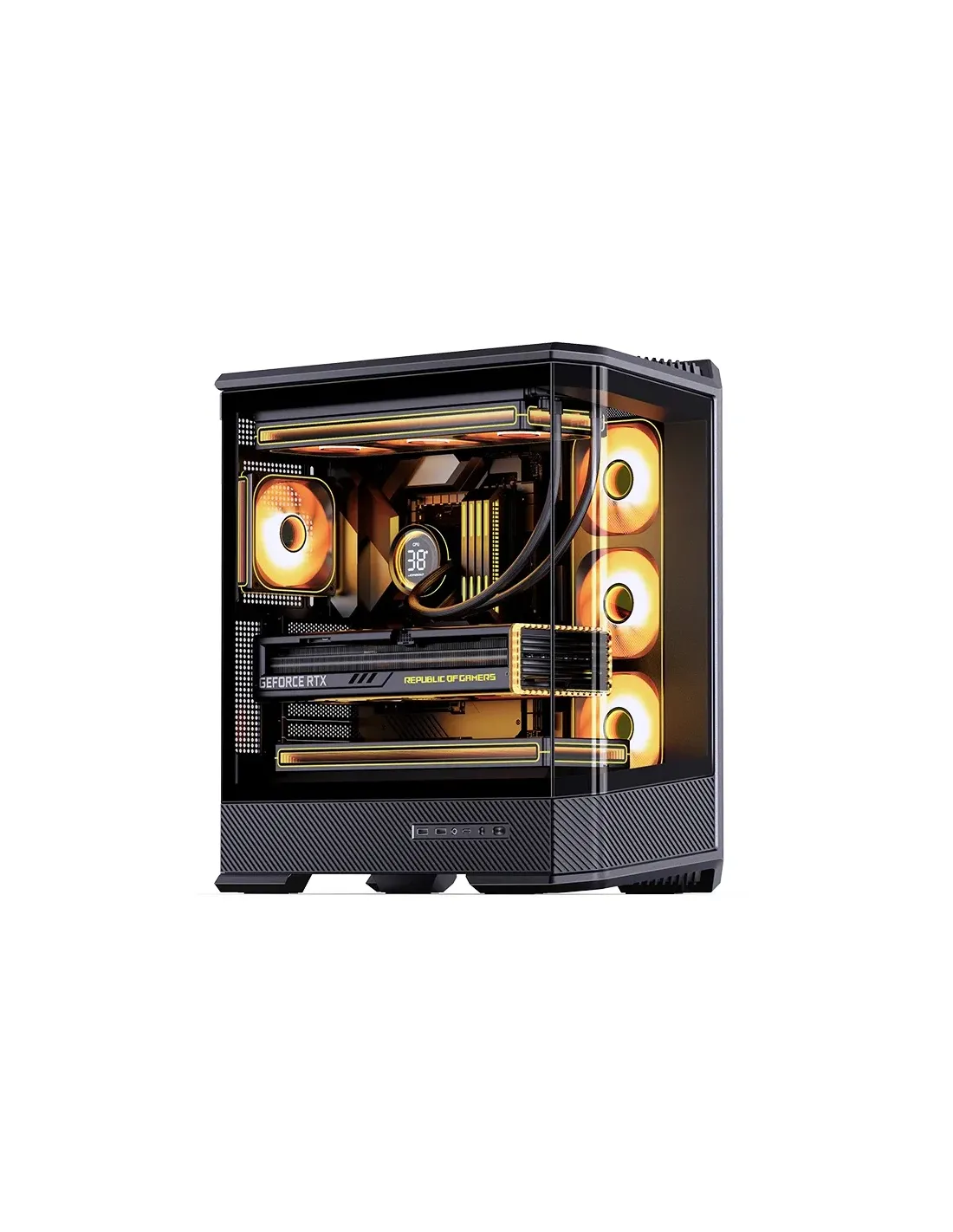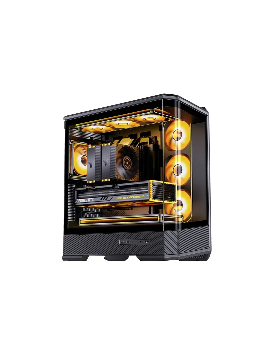 Jonsbo D400. Fattore di forma: Midi Tower, Tipo: PC, Colore del prodotto: Nero. Diametro delle ventole laterali supportato: 120 mm, Diametro delle ventole posteriori supportato: 120 mm, Diametri delle ventole superiori supportati: 120,140 mm. Dimensioni di hard disk drive supportati: 2.5,3.5", Dimensione SSD: 2.5". Larghezza: 239 mm, Profondità: 488 mm, Altezza: 514 mm