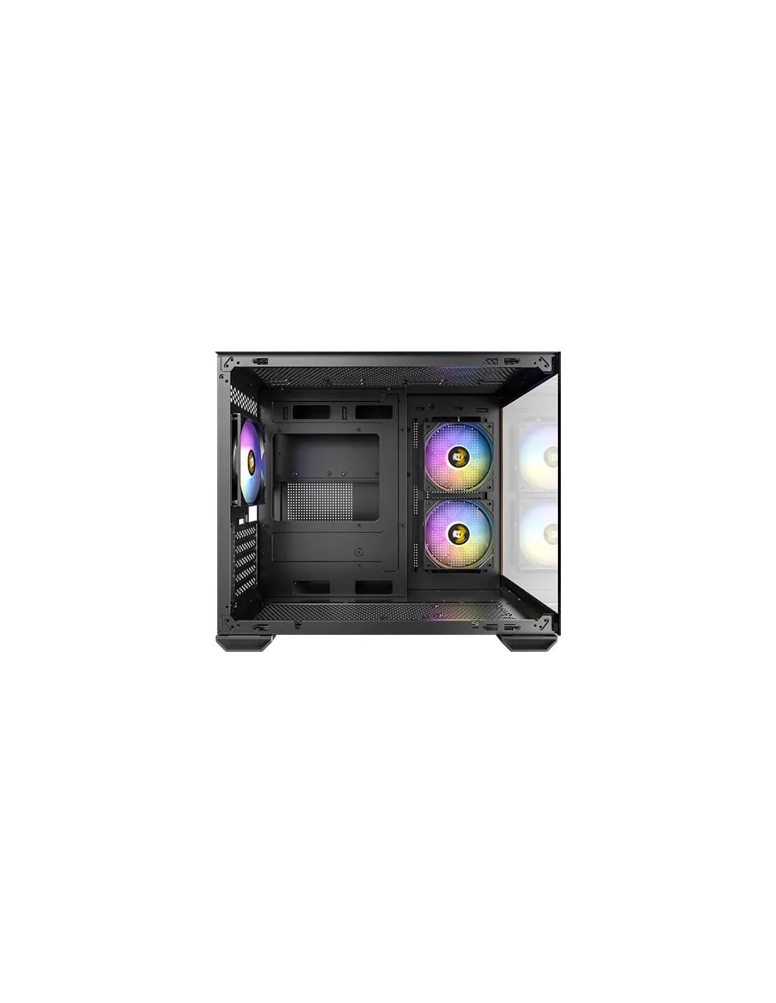 Il design a doppia camera garantisce un raffreddamento indipendente per CPU/GPU a sinistra e PSU a destra.