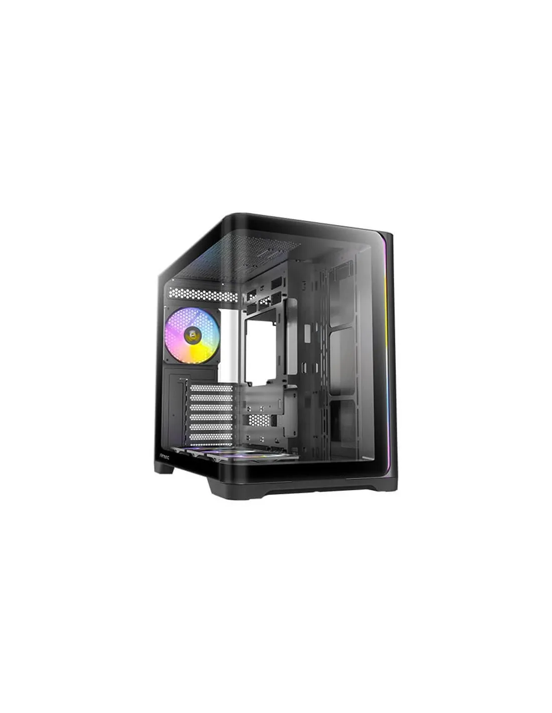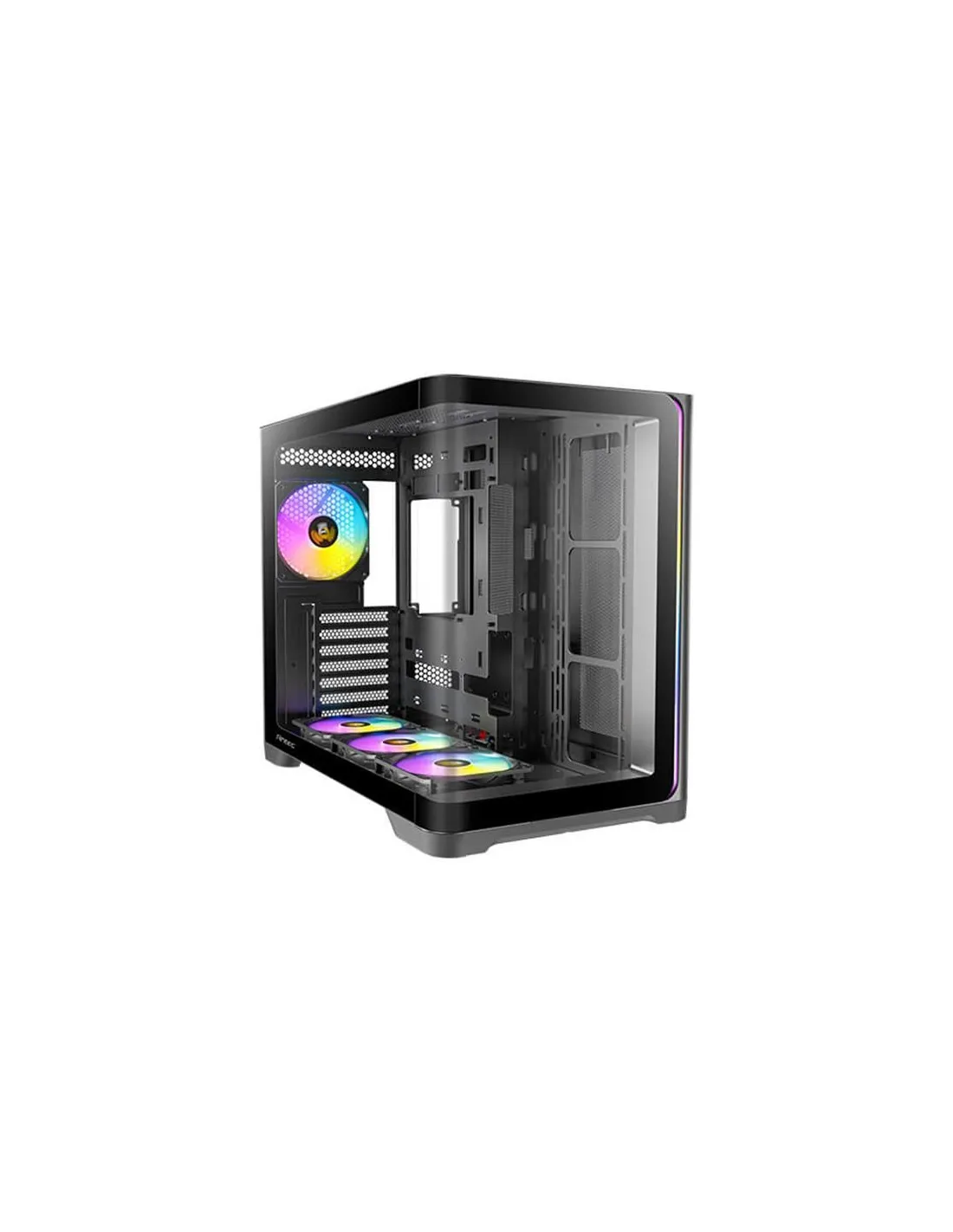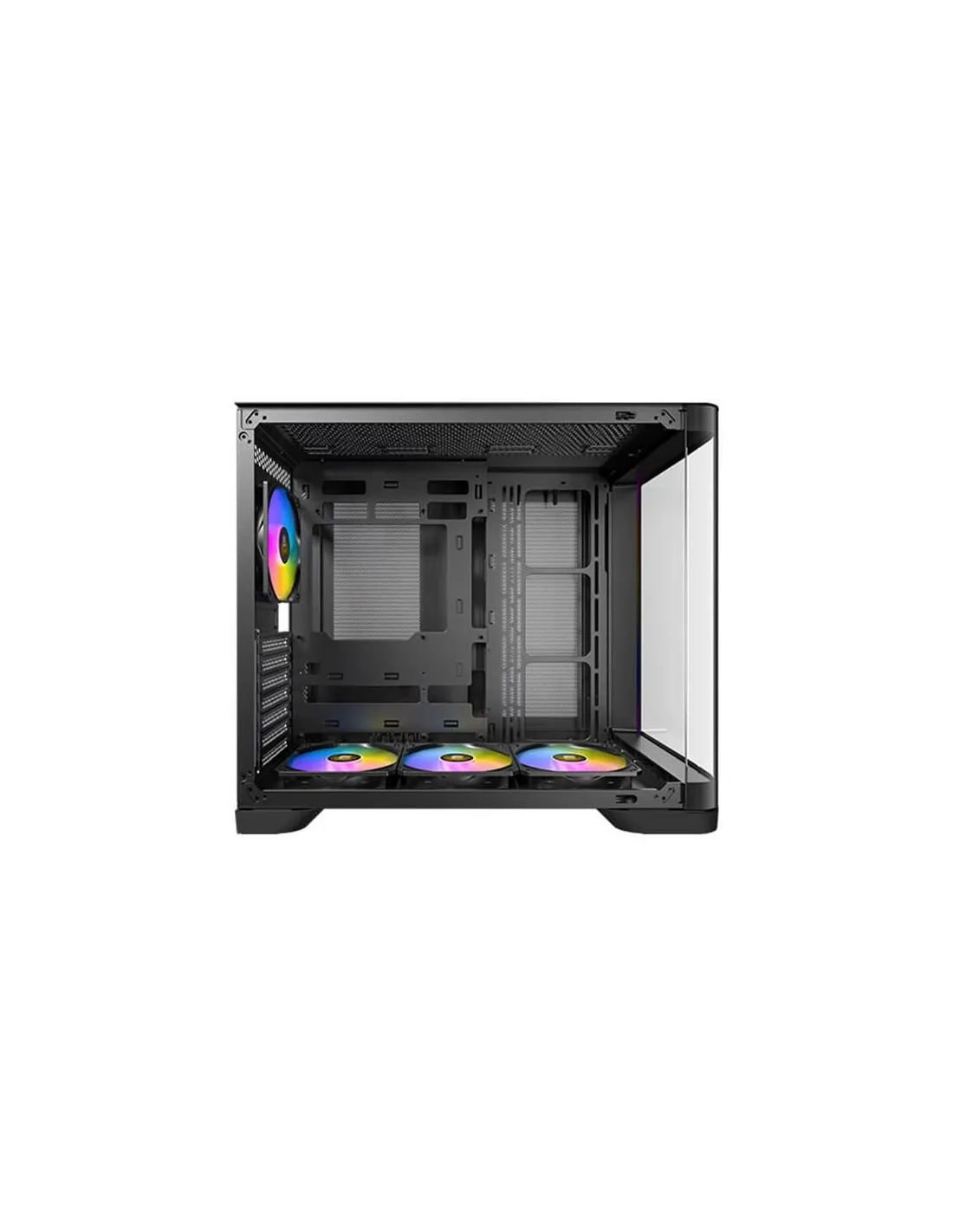 presenta un design a tutta vista in stile "seaside room" con strisce luminose ARGB per un aspetto elegante e trasparente.Design del flusso d’aria verticale – supporta fino a 10 ventole; il flusso d’aria dal basso verso l’alto aiuta a espellere rapidamente il calore.Supporta radiatori da 360 mm sia sulla parte superiore che sulla parte inferiore, e un radiatore da 280 mm sul lato destro contemporaneamente.Quando si utilizza un radiatore e una ventola sul lato destro, lo spessore combinato deve essere inferiore a 75 mm per evitare interferenze con la scheda grafica.Durante il montaggio push-pull del radiatore sulla parte superiore, l’altezza della RAM deve essere inferiore a 35 mm per evitare interferenzeInclude tre ventole PWM ARGB da 120 mm a pale invertite (P12 R) nella parte inferiore, una ventola PWM ARGB da 120 mm (P12) sul retro e un controller PWM ARGB 8+8.Dotato di una porta USB Type-C 3.2 Gen 2 per trasferimenti dati ad alta velocità.Gabbia HDD removibile – supporta un HDD da 3,5" all’interno e due SSD da 2,5" all’esternoFiltro antipolvere magnetico superiore con linguetta di estrazione e filtro antipolvere magnetico inferiore – permette il passaggio dell’aria mantenendo fuori la polvere.Design a doppia camera – sul lato destro dispone di un alimentatore montato in alto con raffreddamento indipendente e 95 mm di spazio per la gestione dei cavi.Supporta schede madri con connettori posteriori, riducendo significativamente i cavi visibili per un assemblaggio più pulito.