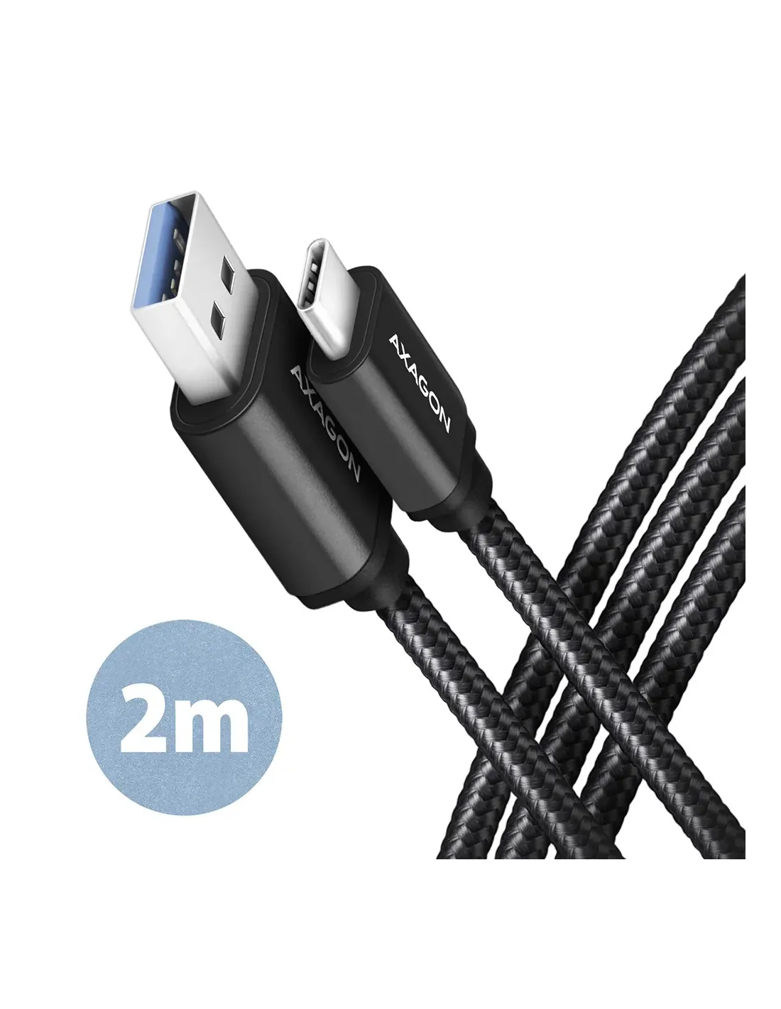 Axagon BUCM3-AM20AB. Lunghezza cavo: 2 m. Connettore 1: USB C, Connettore 2: USB A, Versione USB: USB 3.2 Gen 1 (3.1 Gen 1), Massima velocità di trasferimento: 5 Gbit/s, Placcatura contatti: Oro, Colore del prodotto: Nero
