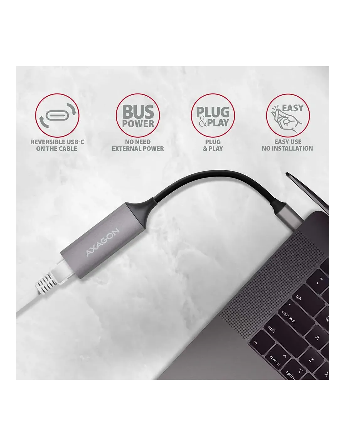 Axagon ADE-TRC. Tecnologia di connessione: Cablato, Interfaccia host: USB tipo-C, Interfaccia: Ethernet. Velocità massima di trasferimento dati: 1000 Mbit/s. Alimentazione USB. Colore del prodotto: Grigio