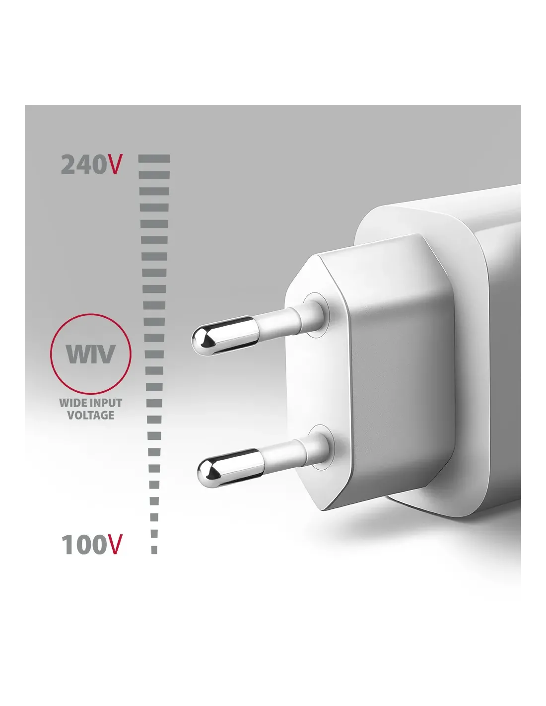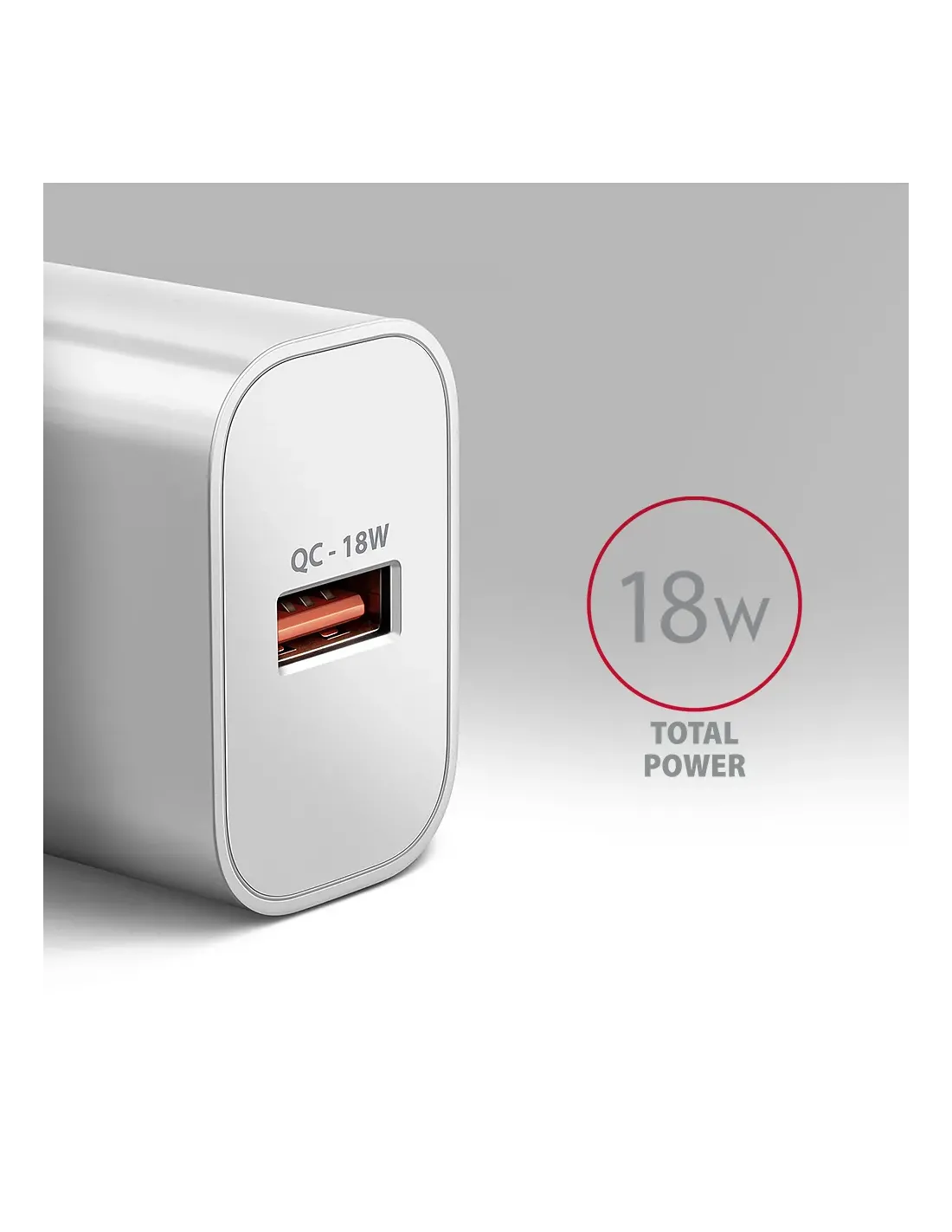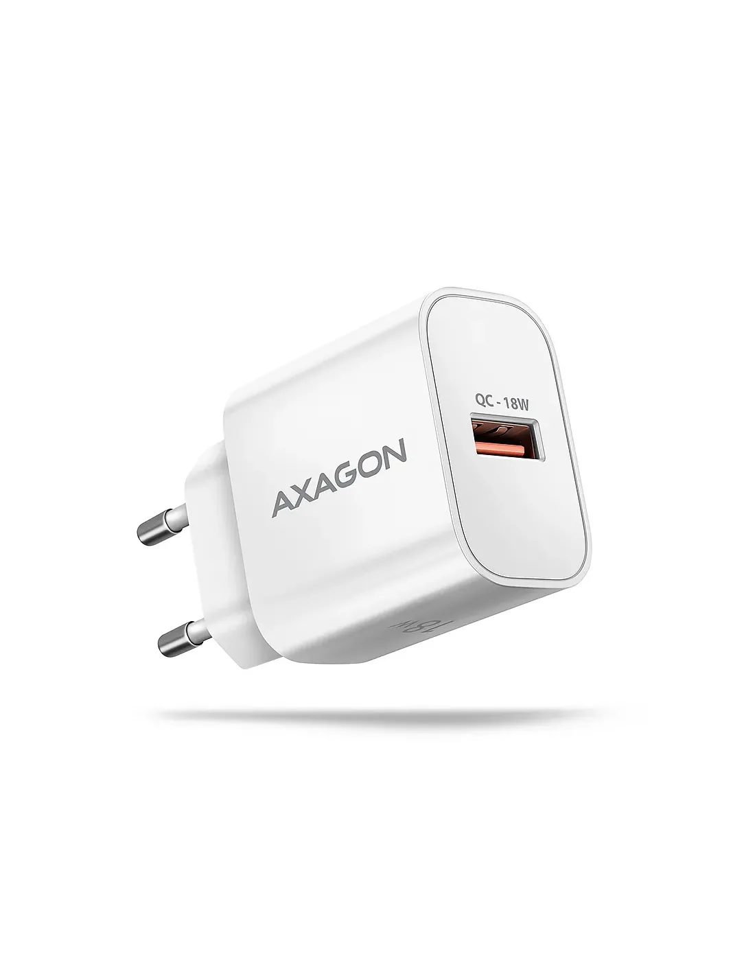 Axagon ACU-QC18W. Tipo di caricatore: Interno, Tipologia alimentazione: AC, Compatibilità caricatore: Telefono cellulare, Smartphone, Orologio intelligente, Tablet, Universale. Voltaggio di ingresso: 100 - 240 V. Quantità porte USB 2.0: 1, Ricarica rapida, Funzionalità di protezione dell'alimentazione: Sovraccarico, Surriscaldamento, Sovraccarico, Cortocircuito, Sotto carico. Colore del prodotto: Bianco