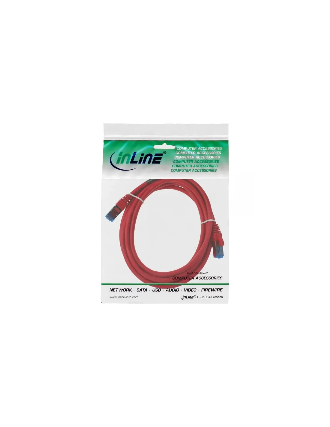 InLine Cavo patch Lan, S/FTP(PiMf), Cat.6a, 500MHz, CU, alogenf., rosso, 5m. Lunghezza cavo: 5 m, Cavo standard: Cat6a, Schermatura dei cavi: S/FTP (S-STP), Connettore 1: RJ-45, Connettore 2: RJ-45, Velocità di trasferimento dati: 10000 Mbit/s, Colore del prodotto: Rosso