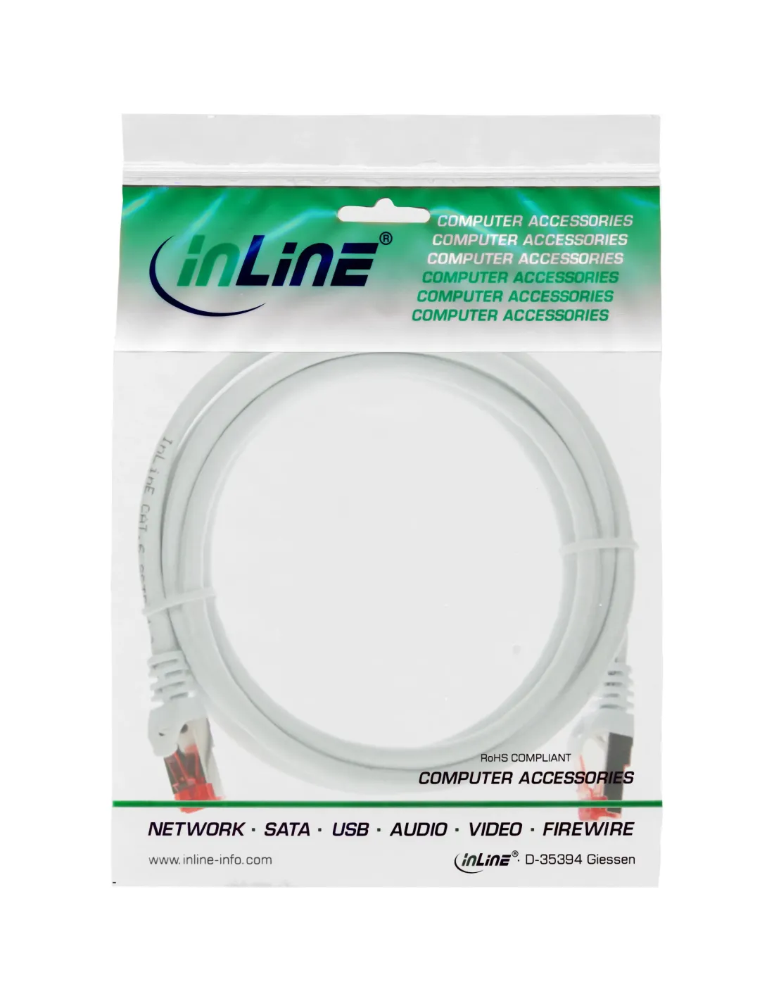 InLine Cavo patch Lan, S/FTP (PiMf), Cat.6, 250 MHz, PVC, CU, bianco, 0,5m. Lunghezza cavo: 0,5 m, Cavo standard: Cat6, Schermatura dei cavi: S/FTP (S-STP), Connettore 1: RJ-45, Connettore 2: RJ-45, Colore del prodotto: Bianco