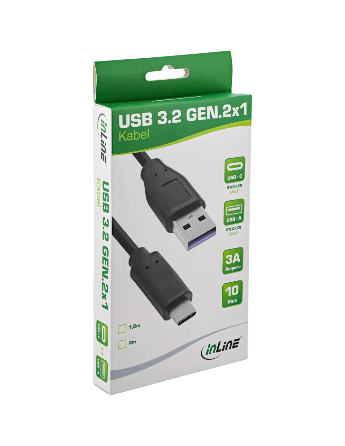 Il cavo InLine® USB 3.2, con spina USB-C a spina USB-A,consente trasferimenti di dati veloci fino a 10 Gb/s, supporta una ricarica potente con un massimo di 27W e convince per la sua lavorazione robusta e la schermatura ottimale.