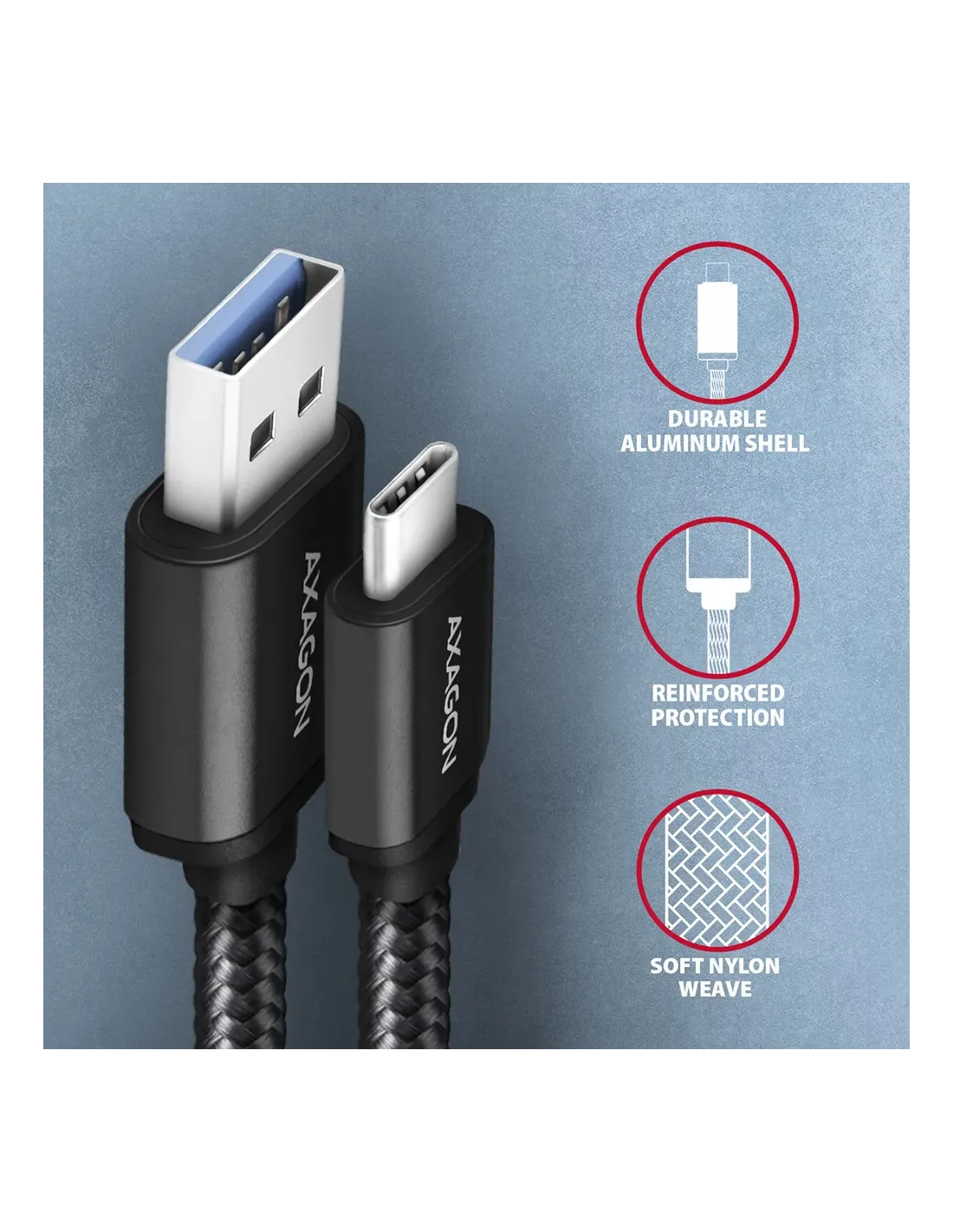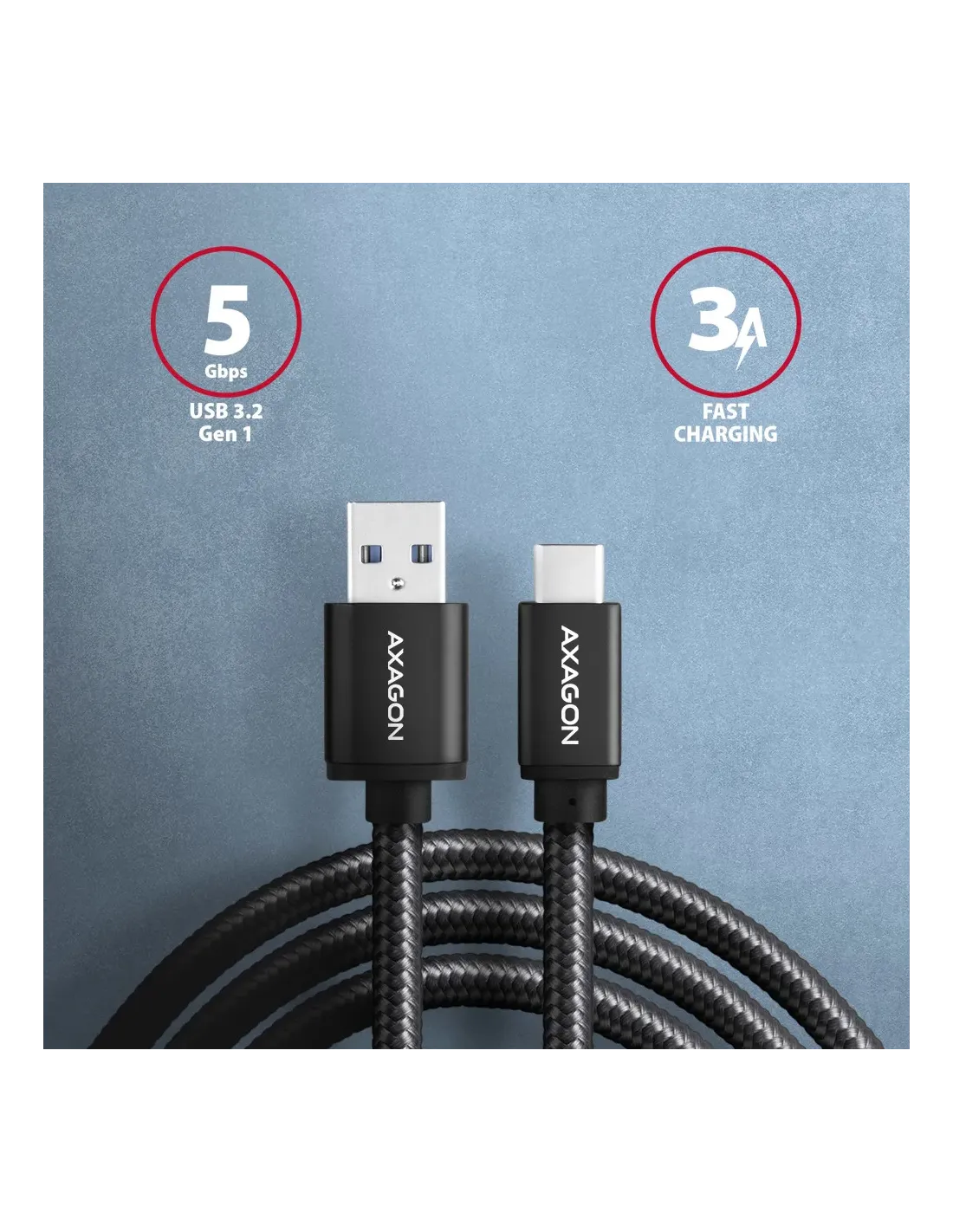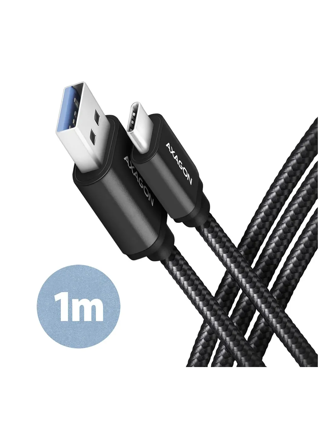 Axagon BUCM3-AM10AB. Lunghezza cavo: 1 m. Connettore 1: USB C, Connettore 2: USB A, Versione USB: USB 3.2 Gen 1 (3.1 Gen 1), Massima velocità di trasferimento: 5 Gbit/s, Placcatura contatti: Oro, Colore del prodotto: Nero