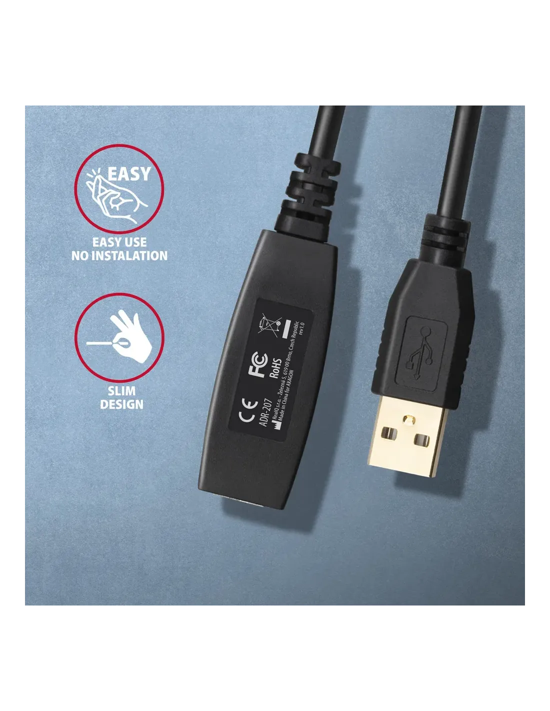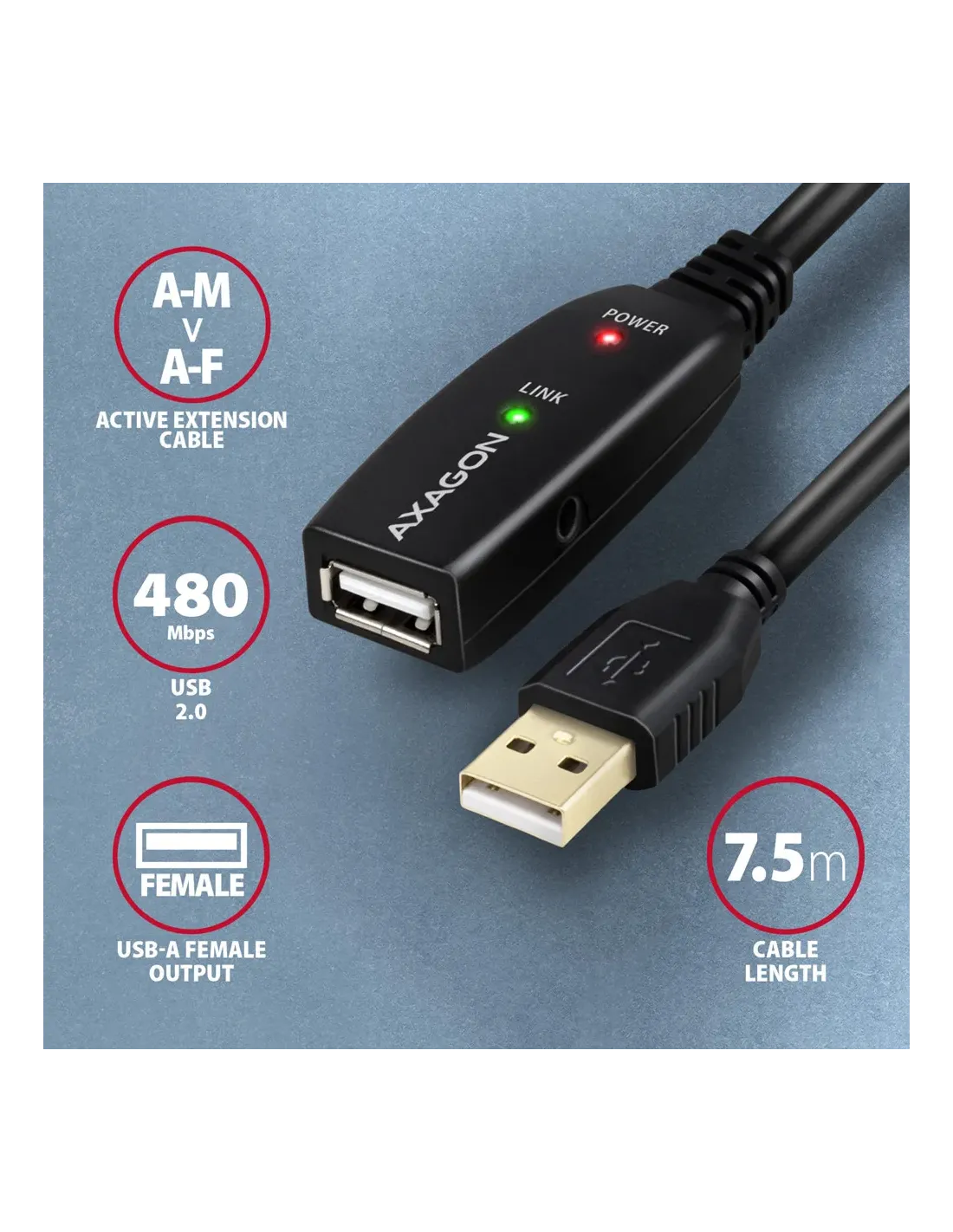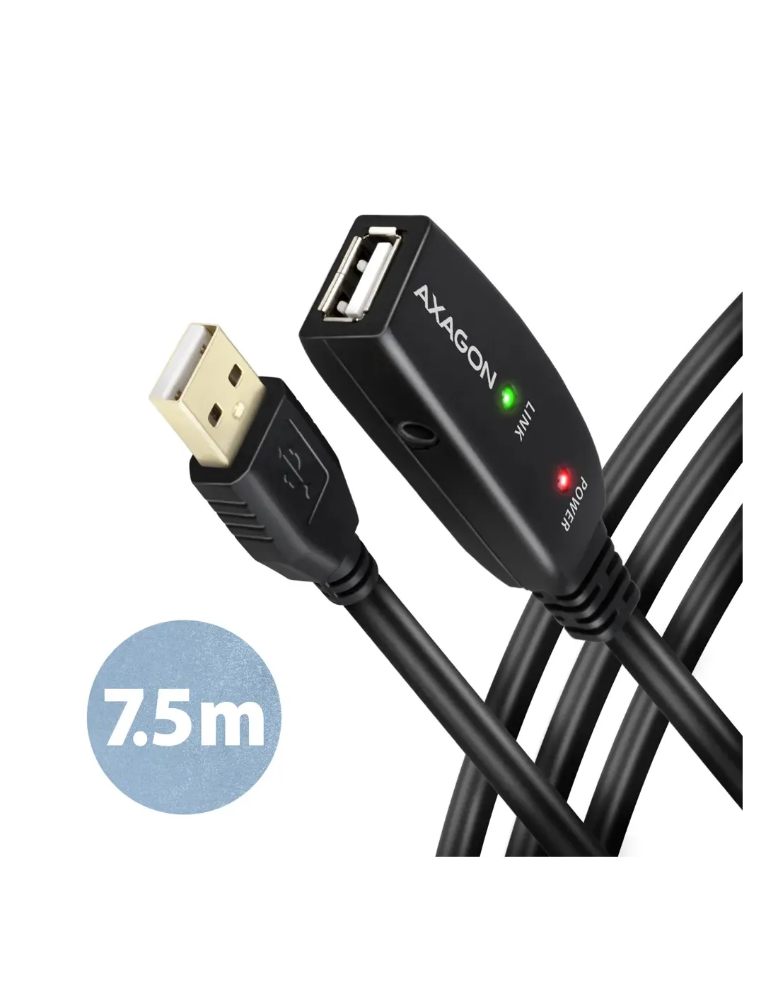 Axagon ADR-207. Lunghezza cavo: 7,5 m. Connettore 1: USB A, Connettore 2: USB A, Versione USB: USB 2.0, Massima velocità di trasferimento: 0,48 Gbit/s, Colore del prodotto: Nero