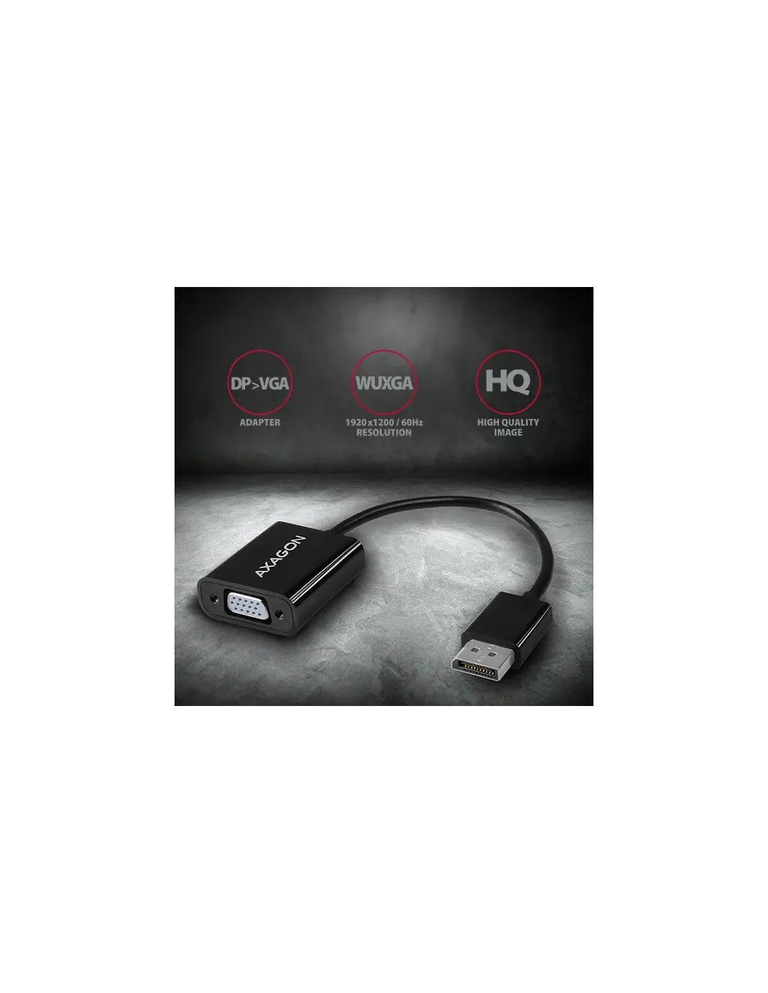 Axagon RVD-VGN. Lunghezza cavo: 0,15 m, Connettore 1: DisplayPort, Connettore 2: VGA (D-Sub). Certificati di conformità: RoHS, CE, Certificazione: CE, RoHS. Peso: 31 g, Larghezza: 16 mm, Profondità: 42 mm. Larghezza imballo: 25 mm, Profondità imballo: 90 mm, Altezza imballo: 180 mm. Quantità per pacco: 1 pz