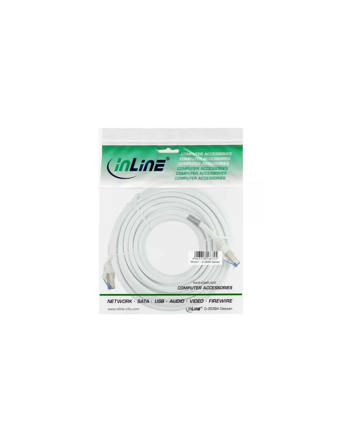 InLine Cavo patch Lan, S/FTP(PiMf), Cat.6a, 500MHz, CU, halogenf., bianco, 1m. Lunghezza cavo: 1 m, Cavo standard: Cat6a, Schermatura dei cavi: S/FTP (S-STP), Connettore 1: RJ-45, Connettore 2: RJ-45, Velocità di trasferimento dati: 10000 Mbit/s, Colore del prodotto: Bianco