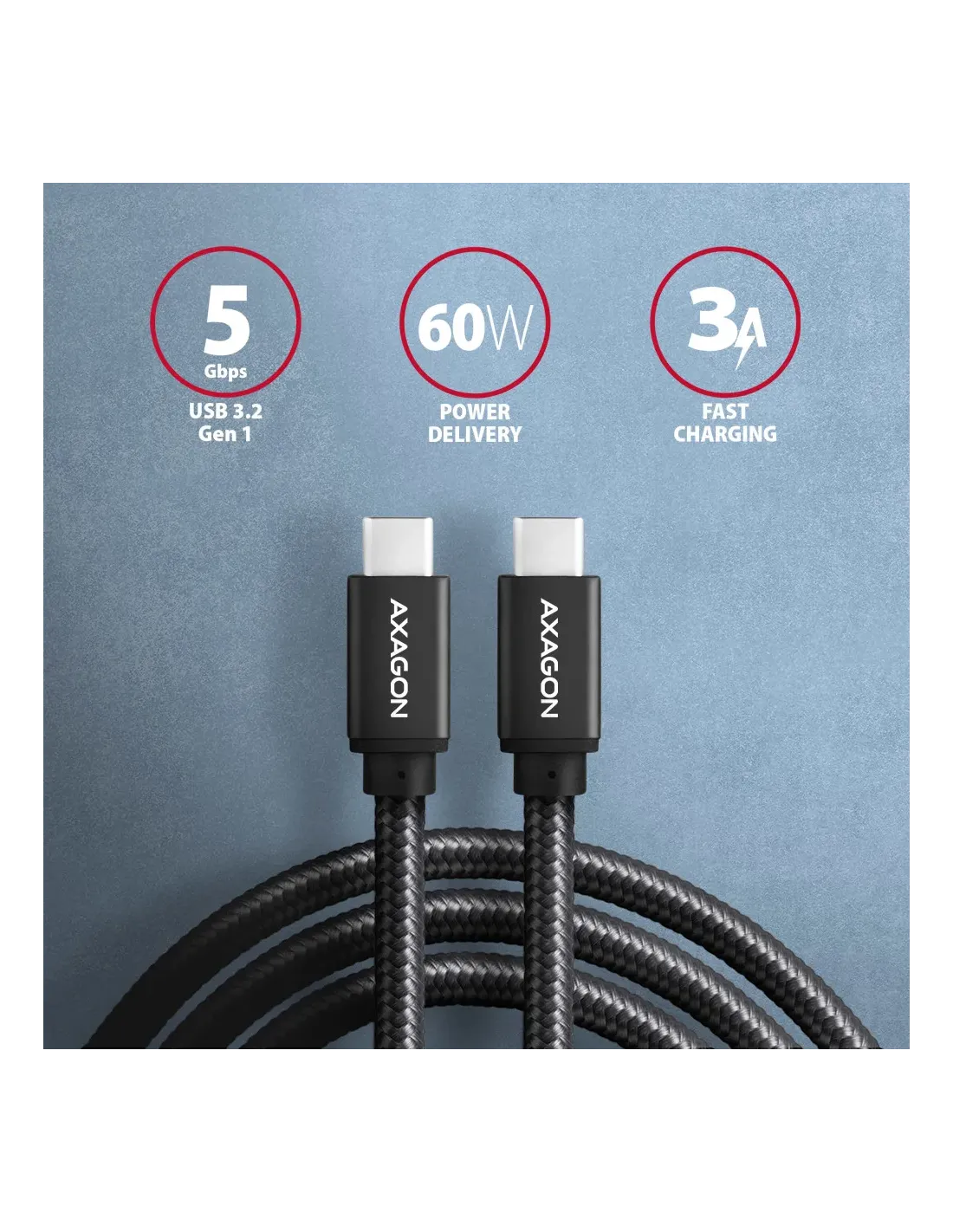 Axagon BUCM3-CM10AB. Lunghezza cavo: 1 m. Connettore 1: USB C, Connettore 2: USB C, Versione USB: USB 3.2 Gen 1 (3.1 Gen 1), Massima velocità di trasferimento: 5 Gbit/s, Placcatura contatti: Oro, Colore del prodotto: Nero