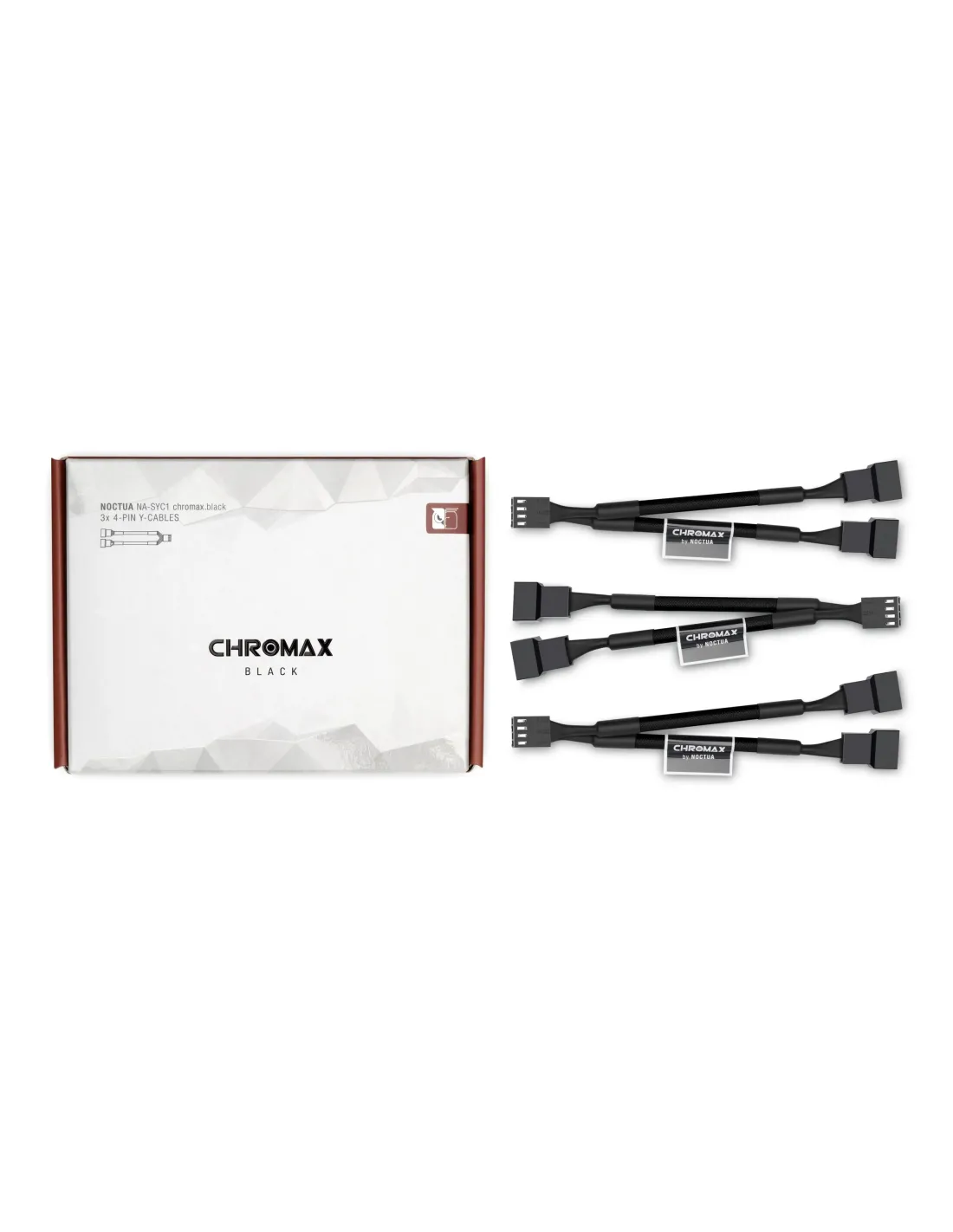 Noctua NA-SYC1 CHROMAX.BLACK. Tipo: Prolunga del cavo, Colore del prodotto: Nero, Genere del connettore 1: Femmina. Larghezza: 115 mm. Quantità per pacco: 3 pz, Tipo di imballo: Scatola