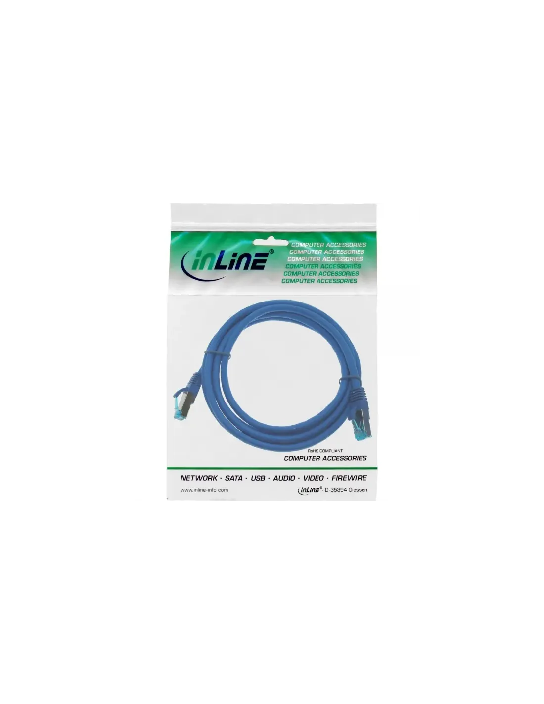 Cavo Patch InLine® HalogenFree professionale ad altissima qualità per reti dati Lan in Cat.6A con schermatura doppia S/FTP (PiMf). Adatto per collegamenti 10Gigabit (10 Gbps) con una frequenza massima a 500Mhz. e per connessioni Ethernet a Fast Ethernet a norma di Switche, Router, Hub, Schede, Printserver e di tutte le periferiche attive e passive di rete in ambienti altamente professionali e industriali come Data Center e Serverfarm.