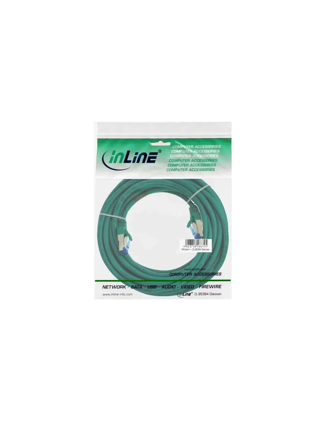 InLine Cavo patch Lan, S/FTP(PiMf), Cat.6a, 500MHz, CU, halogenf., verde, 10m. Lunghezza cavo: 10 m, Cavo standard: Cat6a, Schermatura dei cavi: S/FTP (S-STP), Connettore 1: RJ-45, Connettore 2: RJ-45, Colore del prodotto: Verde