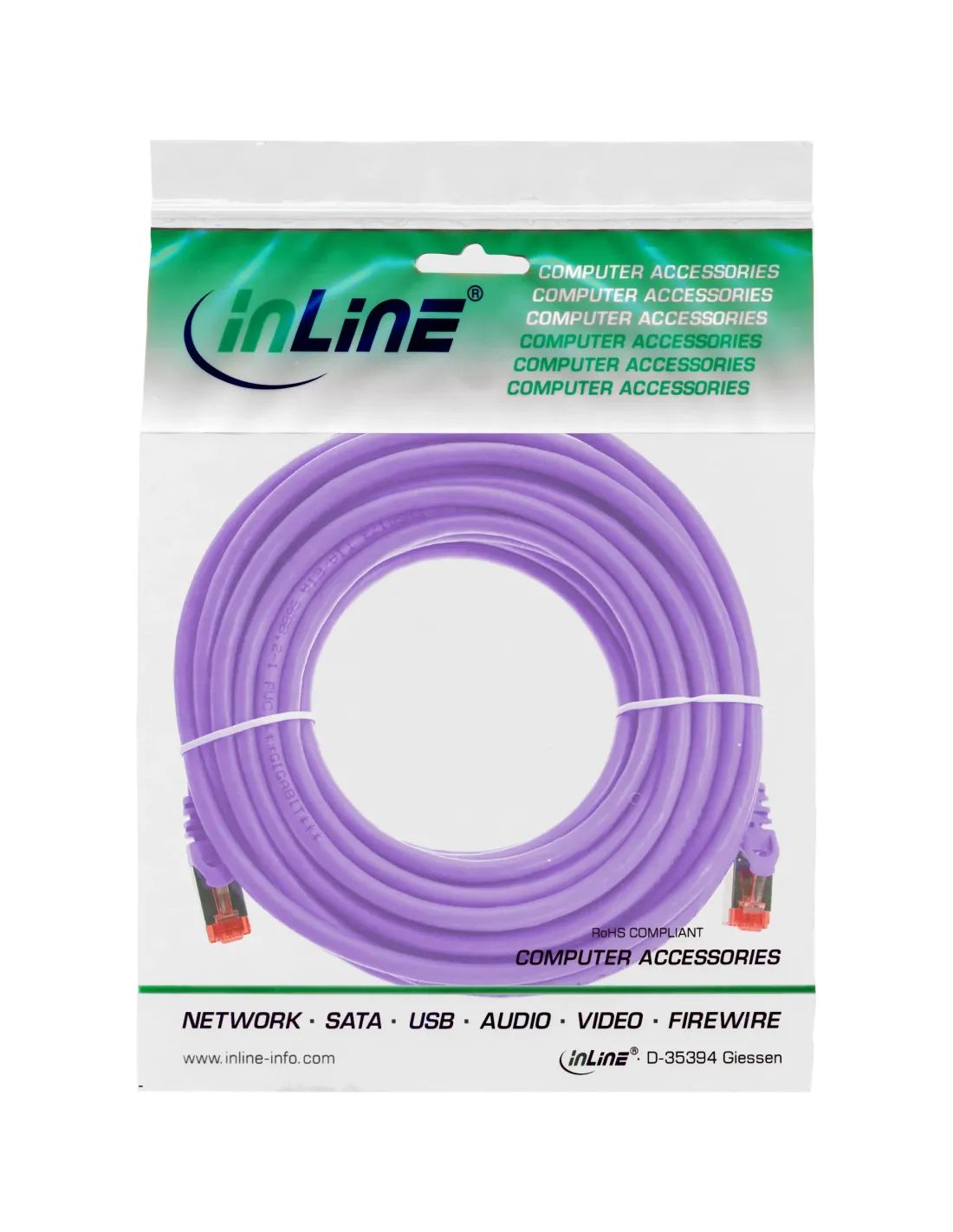 InLine Cavo patch Lan, S/FTP (PiMf), Cat.6, 250 MHz, PVC, CU, viola, 5m. Lunghezza cavo: 5 m, Cavo standard: Cat6, Schermatura dei cavi: S/FTP (S-STP), Connettore 1: RJ-45, Connettore 2: RJ-45, Colore del prodotto: Viola