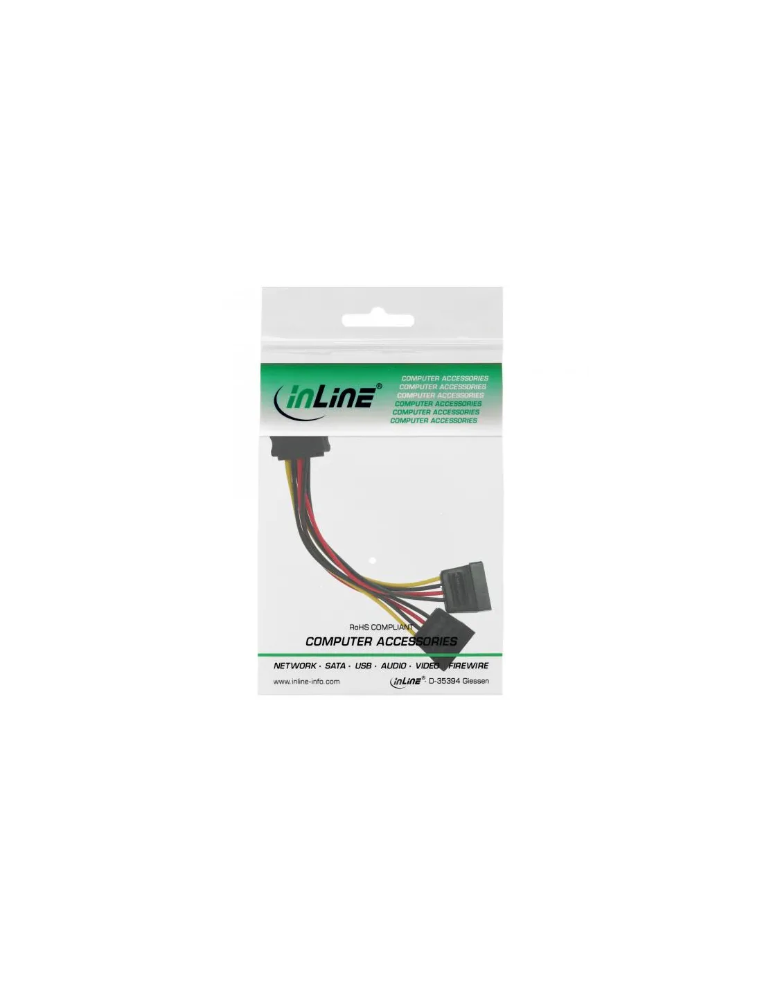 InLine Cavo di alimentazione a Y, 1x Sata 15pin M a 2x SATA 15pin F, 0,15m. Lunghezza cavo: 0,15 m, Genere di connettore: Maschio/Femmina, Colore del prodotto: Multicolore. Peso: 19 g. Larghezza imballo: 100 mm, Profondità imballo: 140 mm, Altezza imballo: 8 mm