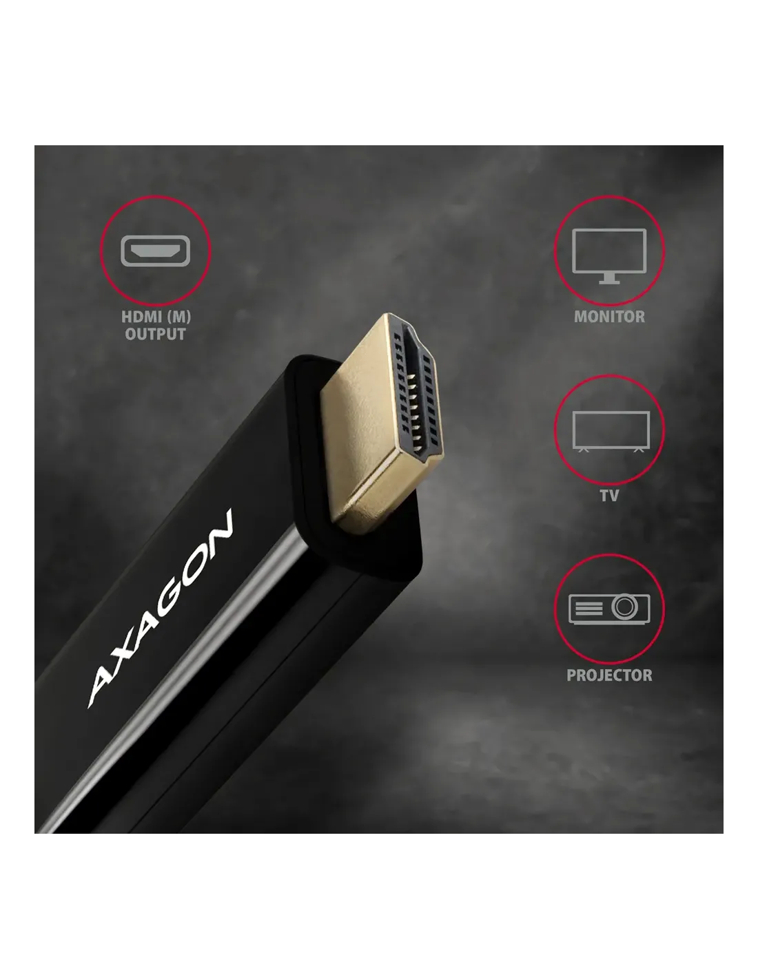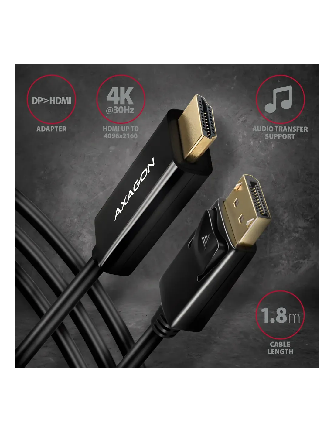 Axagon RVD-HI14C2. Lunghezza cavo: 1,8 m, Connettore 1: HDMI tipo A (Standard), Connettore 2: DisplayPort. Certificati di conformità: RoHS, CE, Certificazione: CE, RoHS. Peso: 70 g, Larghezza: 45 mm, Profondità: 21 mm. Larghezza imballo: 195 mm, Profondità imballo: 95 mm, Altezza imballo: 30 mm. Quantità per pacco: 1 pz