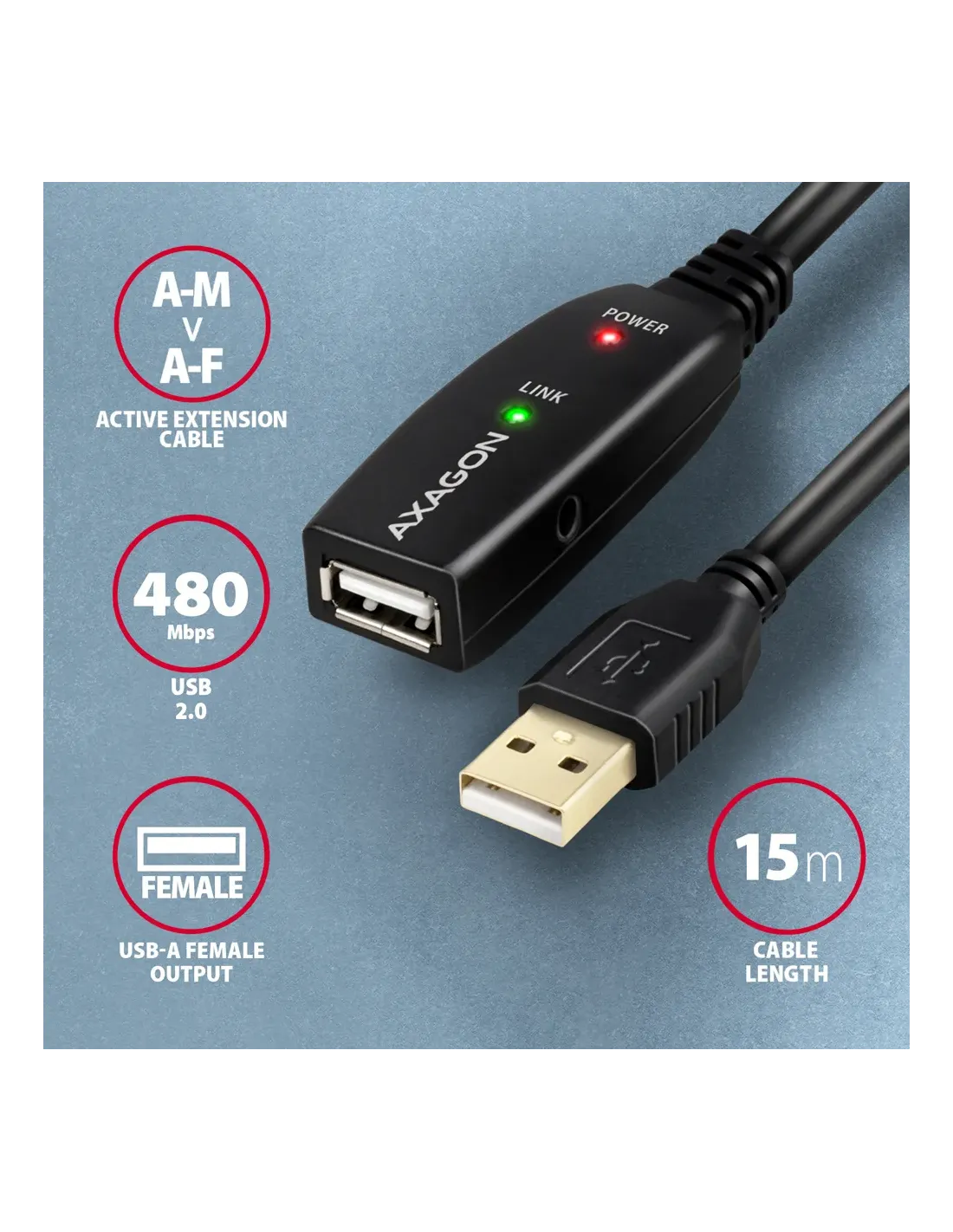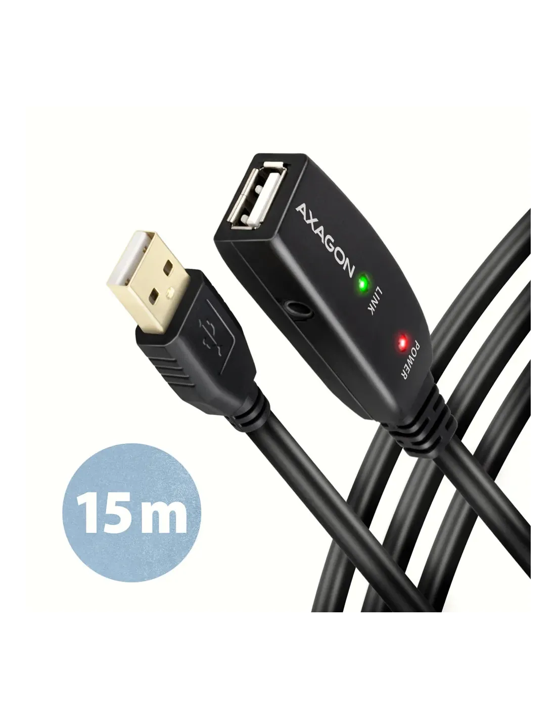 Axagon ADR-215 USB 2.0 A-M -> A-F active extension/repeater cable 15m - Kabel - Digital/Daten. Lunghezza cavo: 15 m. Connettore 1: USB A, Connettore 2: USB A, Versione USB: USB 2.0, Massima velocità di trasferimento: 0,48 Gbit/s, Colore del prodotto: Nero