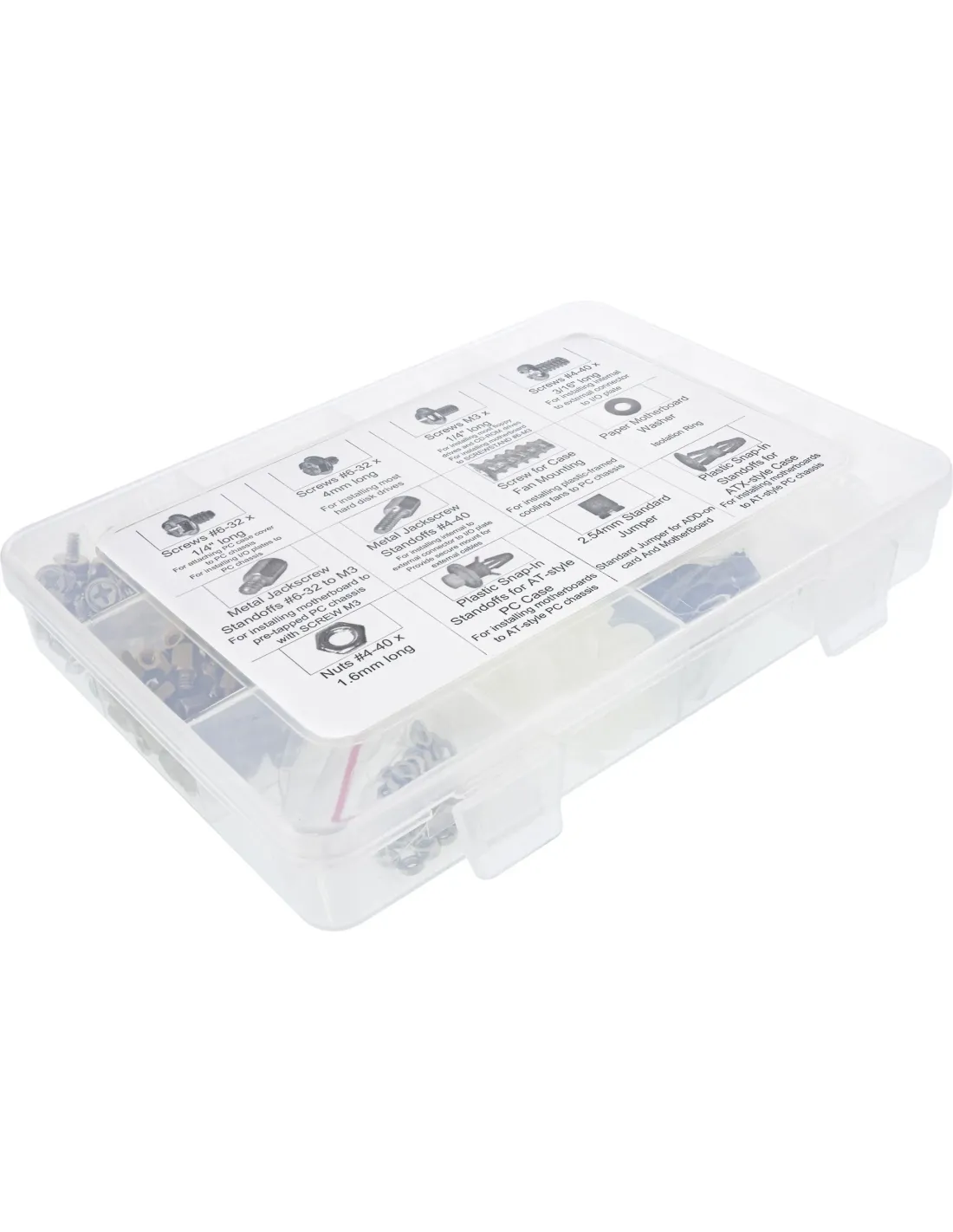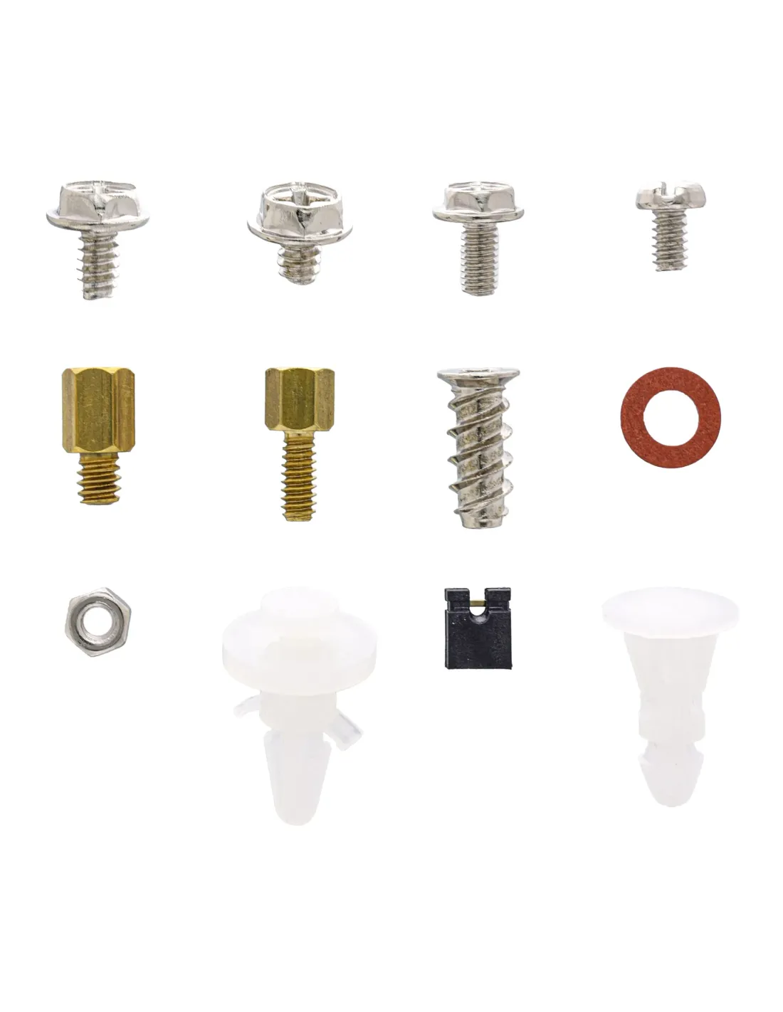Box in plastica con separatori e richiudibile contenente un assortimento di viti e minuteria varia indispensabili in ambito informatico per il montaggio e/o la manutenzione di Personal Computer (PC), Server e altro.