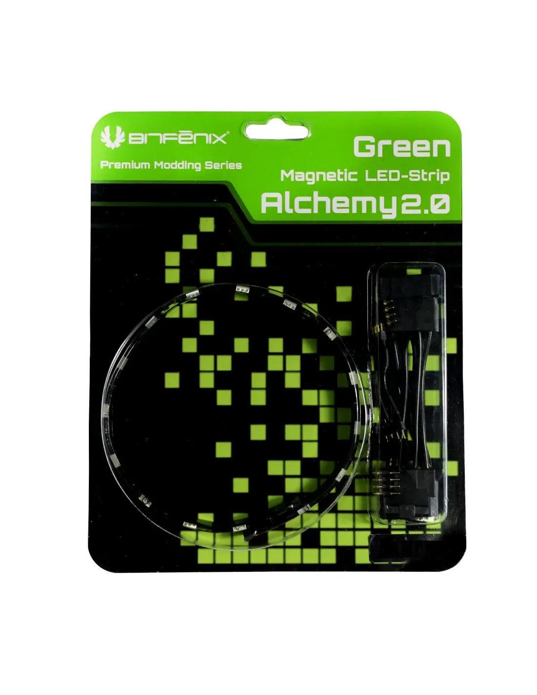 BitFenix Alchemy 2.0. Posizionamento supportato: Interno, Materiale della scocca: Poliuretano, Cloruro di polivinile (PVC), Rame. Colore della luce: Verde, Numero di lampadine: 6 lampadina(e), Tipo di Lampadina: LED. Lunghezza: 120 mm, Larghezza: 10 mm, Spessore: 2 mm
