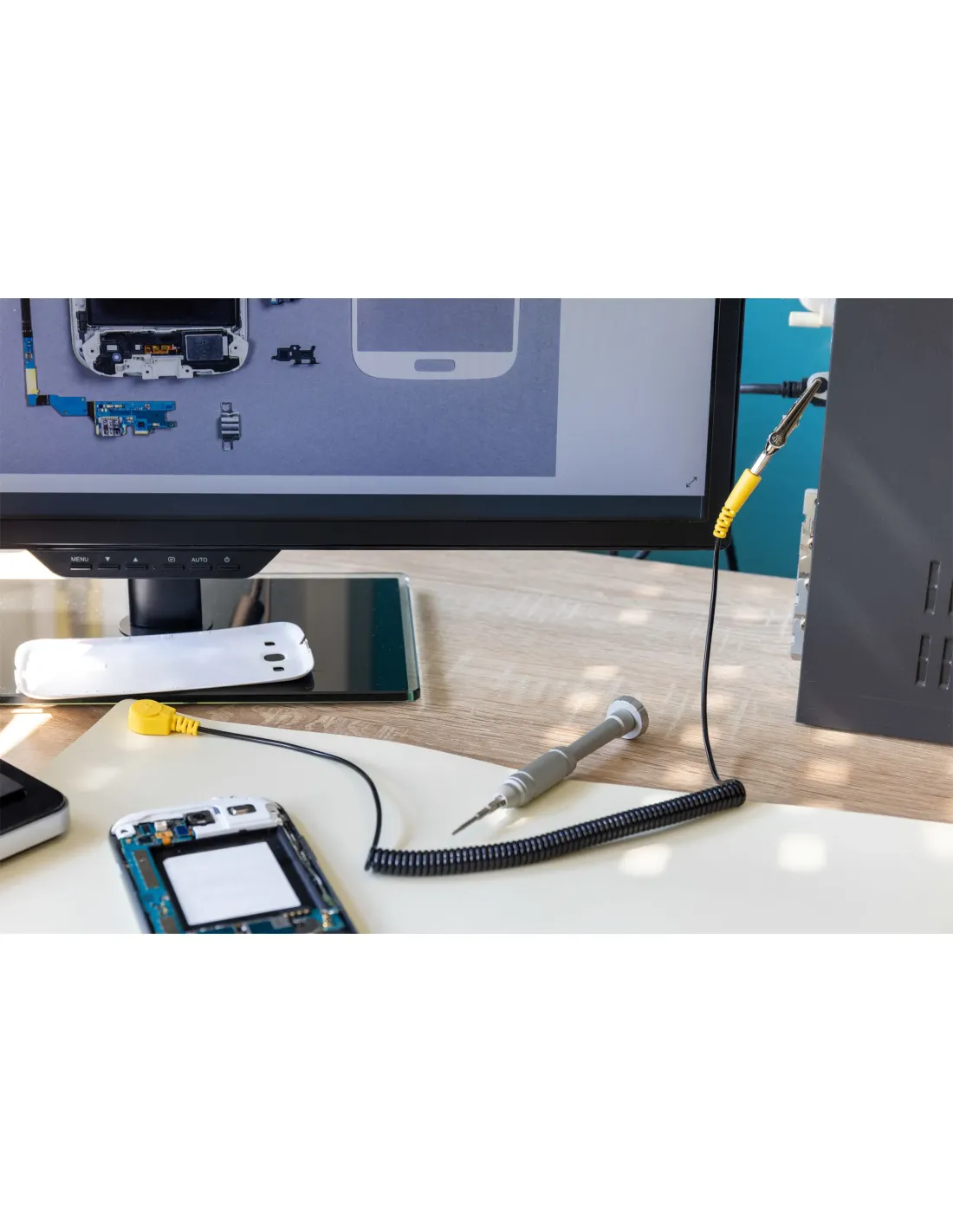 Consegna: tappetino da lavoro, cavo a spirale, clip a coccodrillo