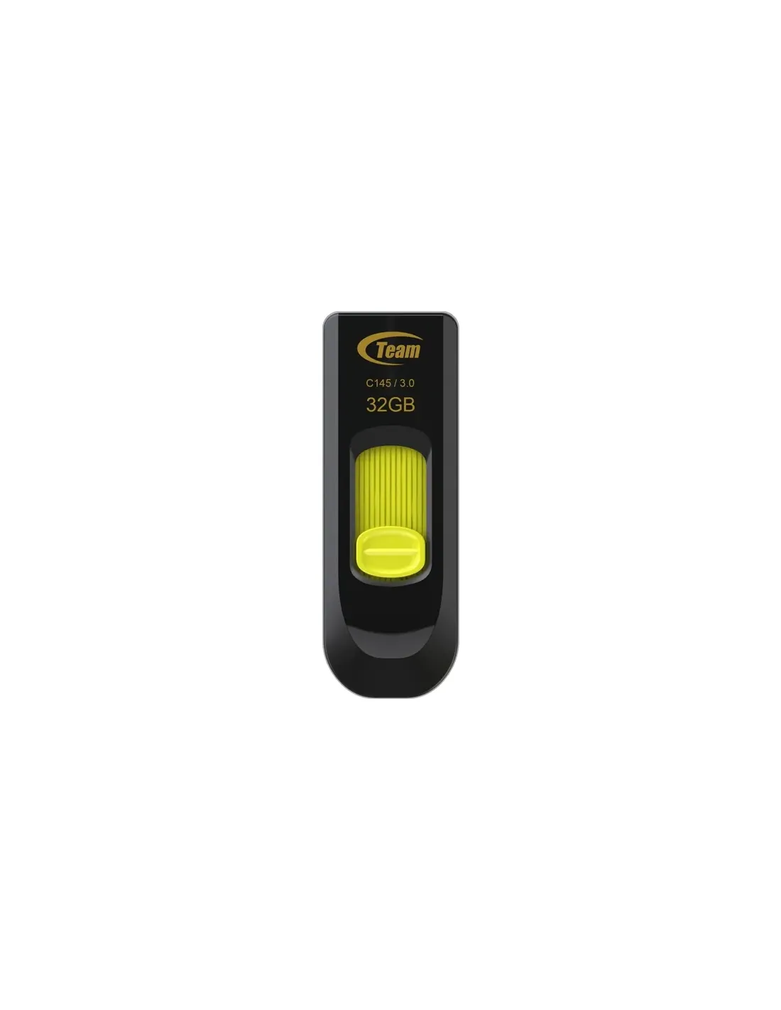 Team Group C145. Capacità: 32 GB, Interfaccia dispositivo: USB tipo A, Versione USB: 3.2 Gen 1 (3.1 Gen 1). Fattore di forma: Lamina di scorrimento. Peso: 5 g. Colore del prodotto: Nero, Giallo